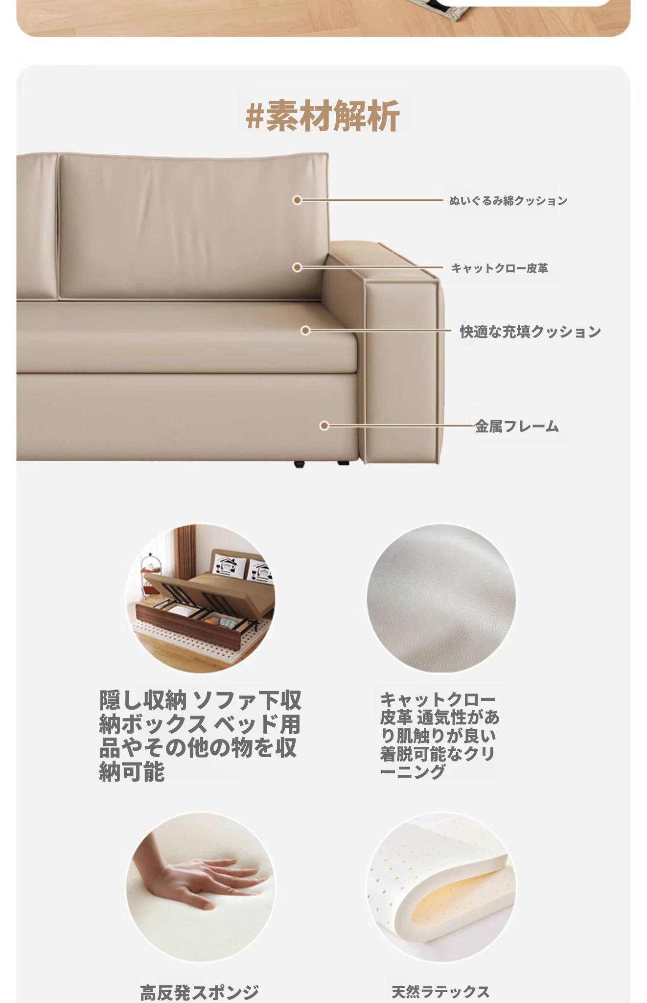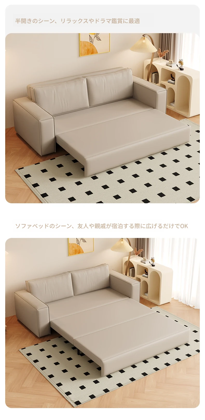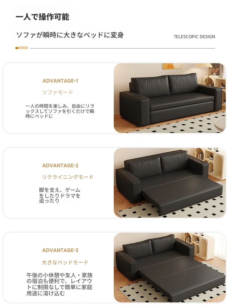 豆腐ブロック本革ソファベッド|シンプルなデザインでダブル・シングル兼用|書斎やバルコニーに最適な折りたたみ式|多機能で引き出し付き、リラックス空間を演出します!