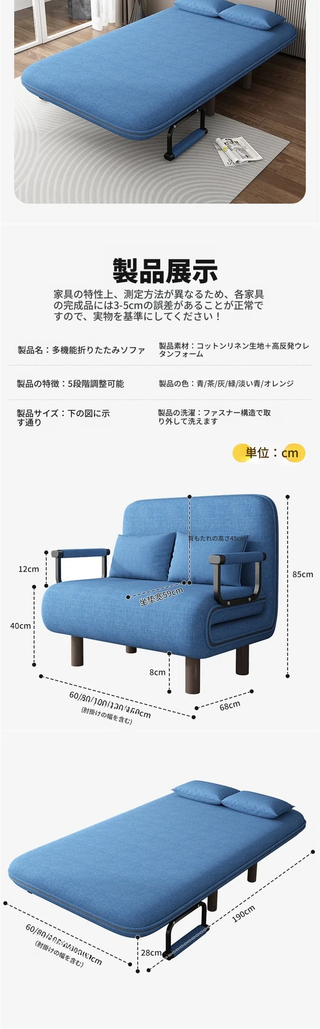 80*190cm ライトブルー(アップグレード厚手タイプ)