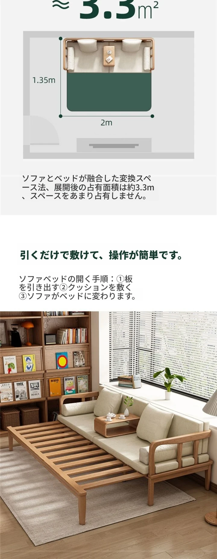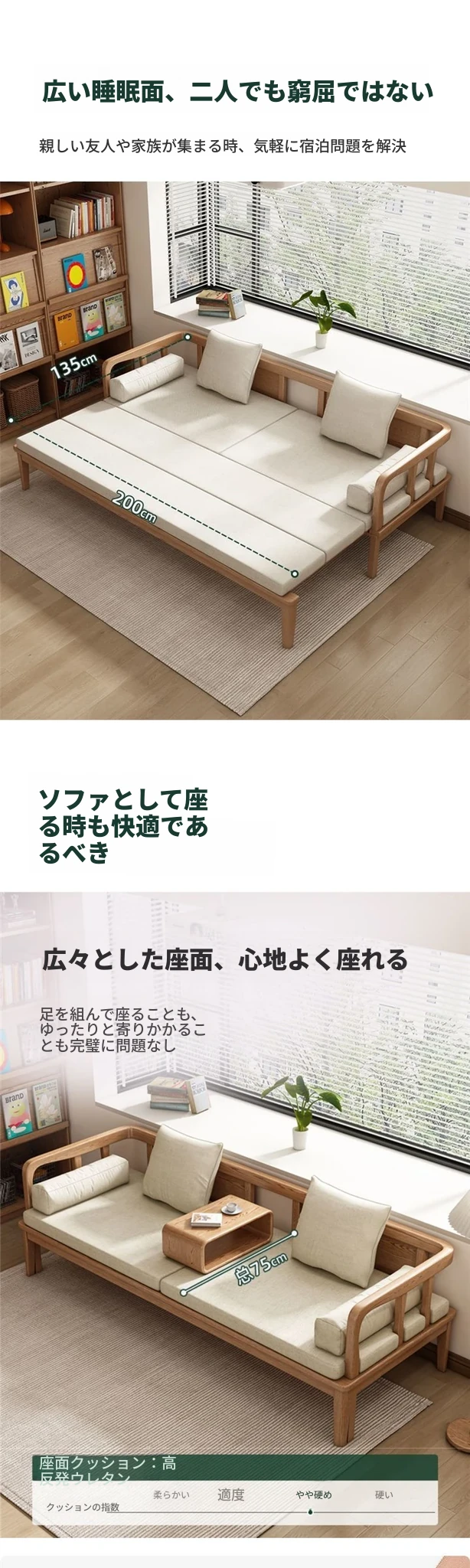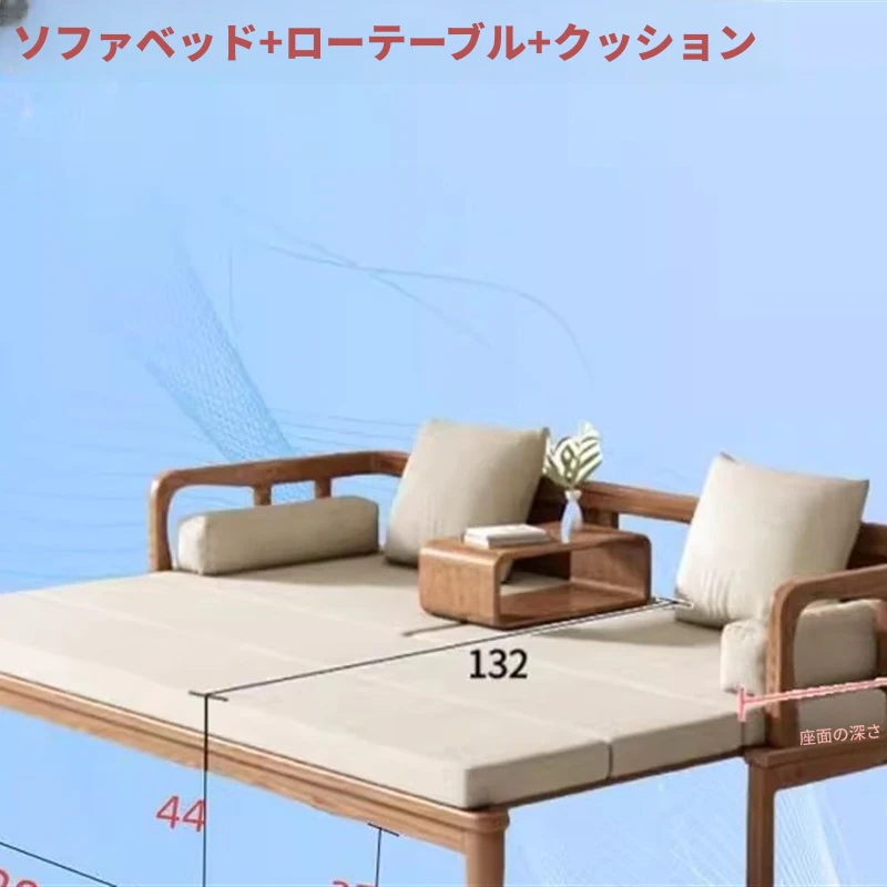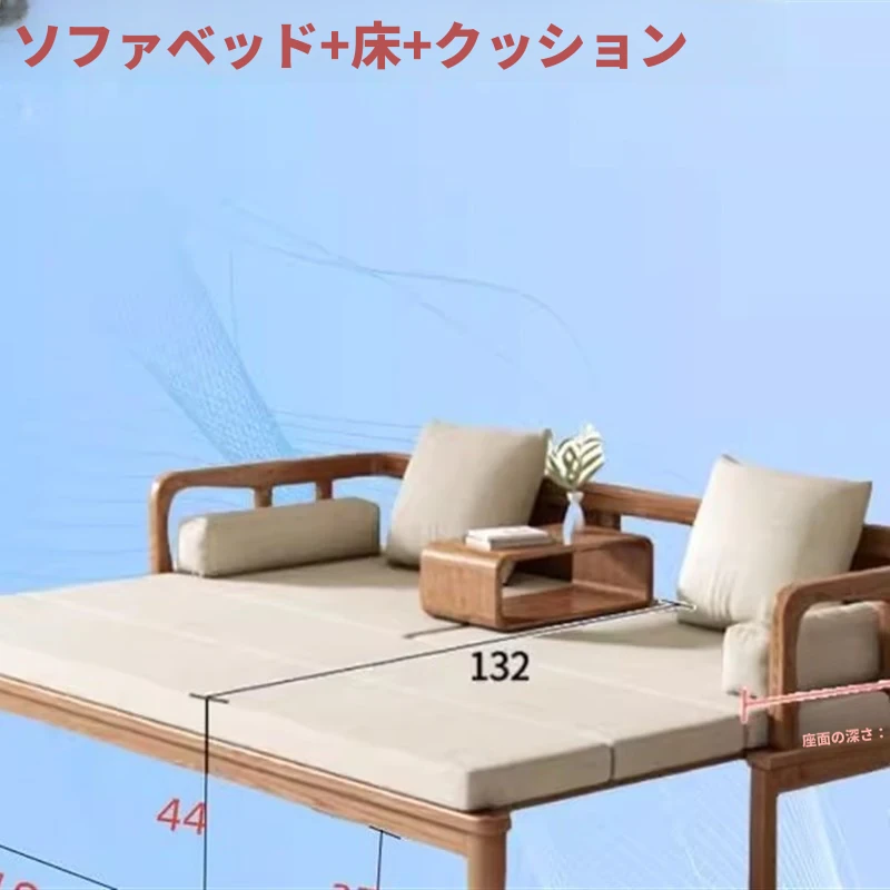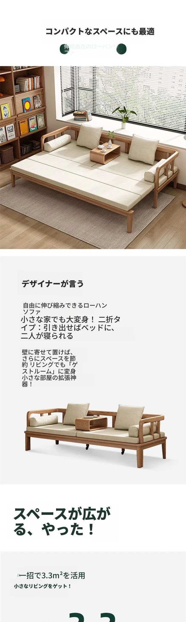 多機能!実木製のソファベッド - 冬夏両用、深さ75CMのゆったり座面、リビングや寝室に最適なコンパクトデザイン。小さな部屋でも使いやすいローハンソファ!あなたの生活空間をスタイリッシュに変えます。