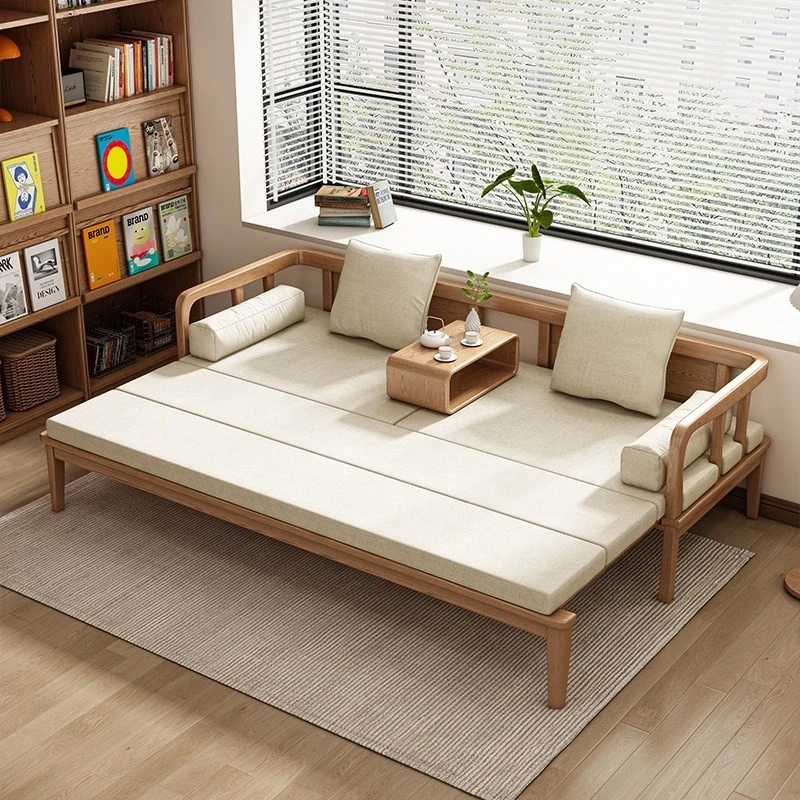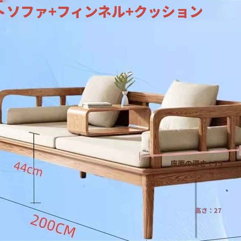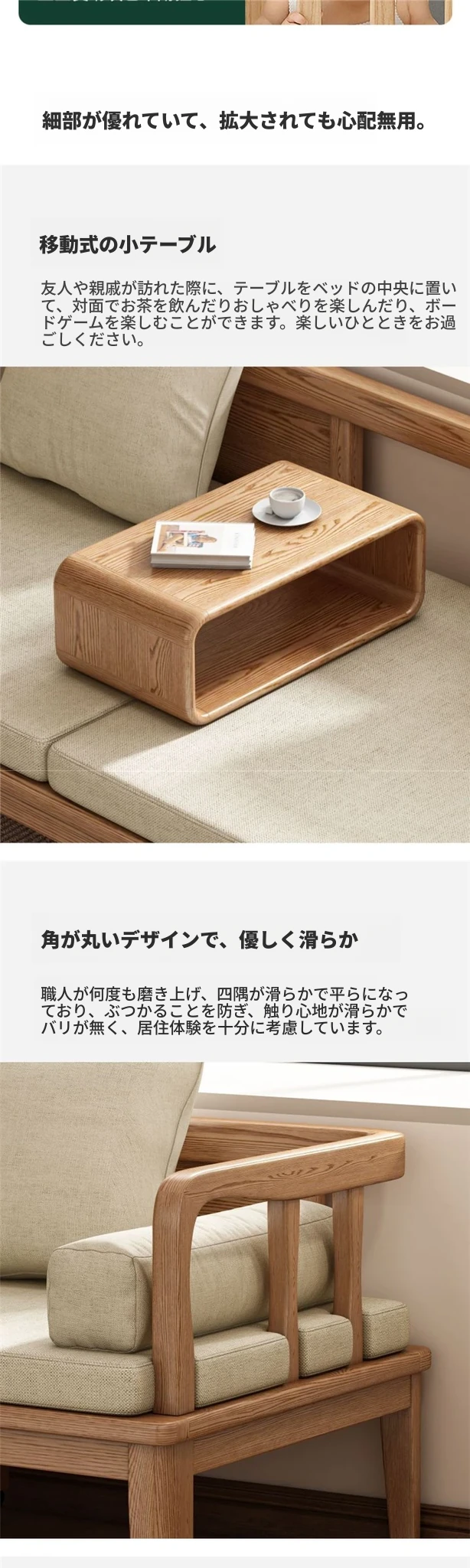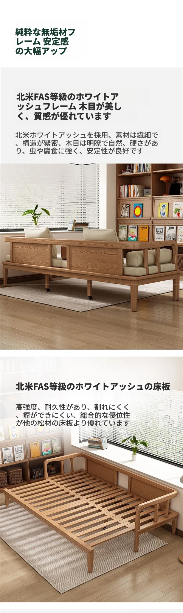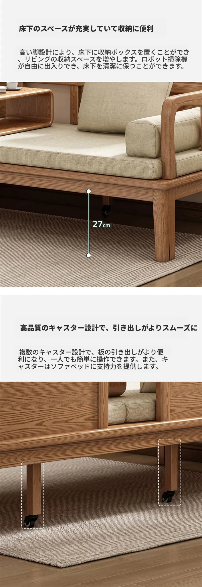 多機能!実木製のソファベッド - 冬夏両用、深さ75CMのゆったり座面、リビングや寝室に最適なコンパクトデザイン。小さな部屋でも使いやすいローハンソファ!あなたの生活空間をスタイリッシュに変えます。