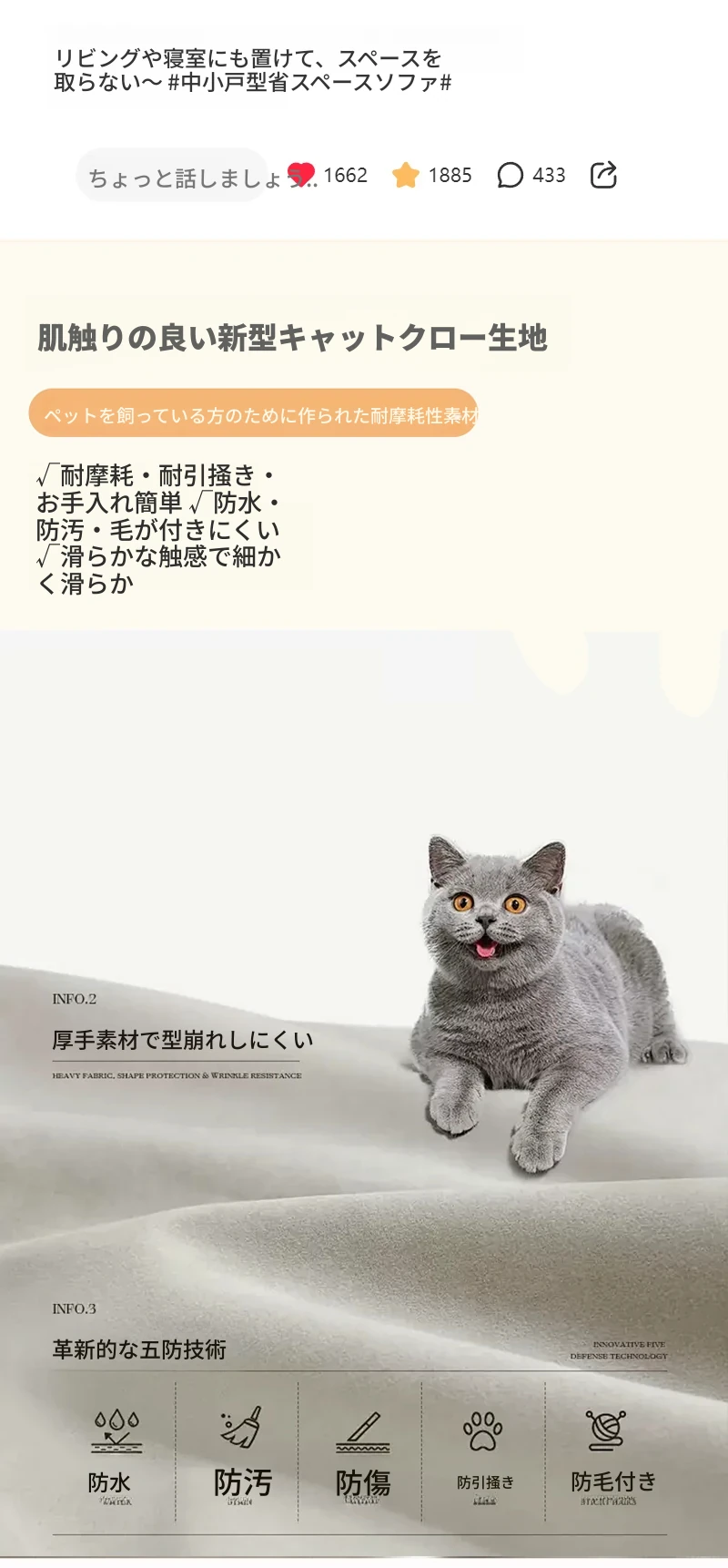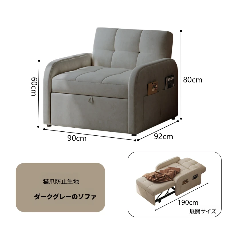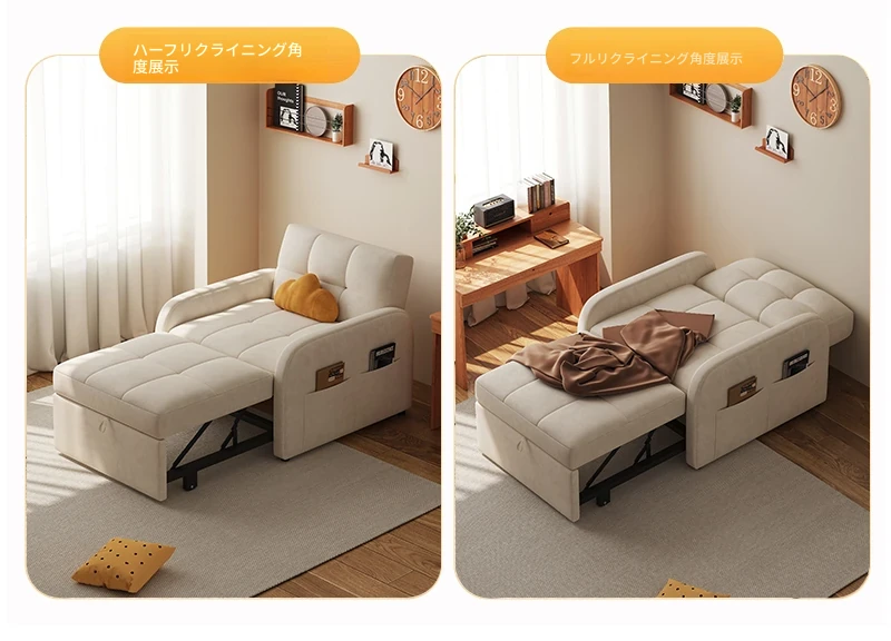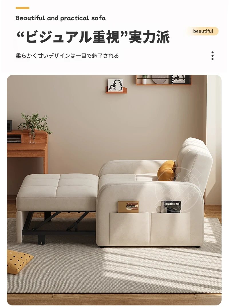 コンパクトソファベッド 折りたたみ式 布製 多機能リビング用 家庭向け スライド式 シングル&ダブル対応 伸縮可能でスペースを有効活用!おしゃれで快適な空間を実現!
