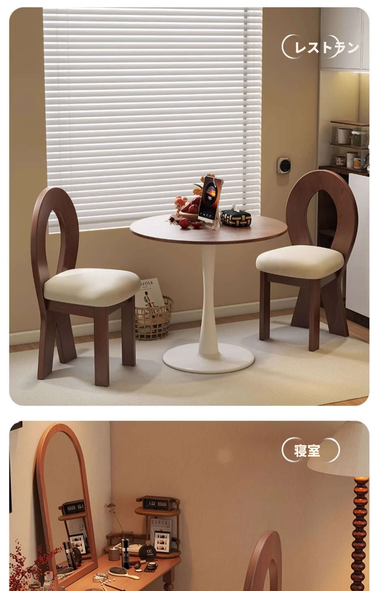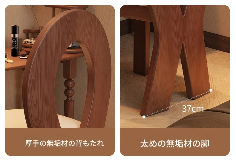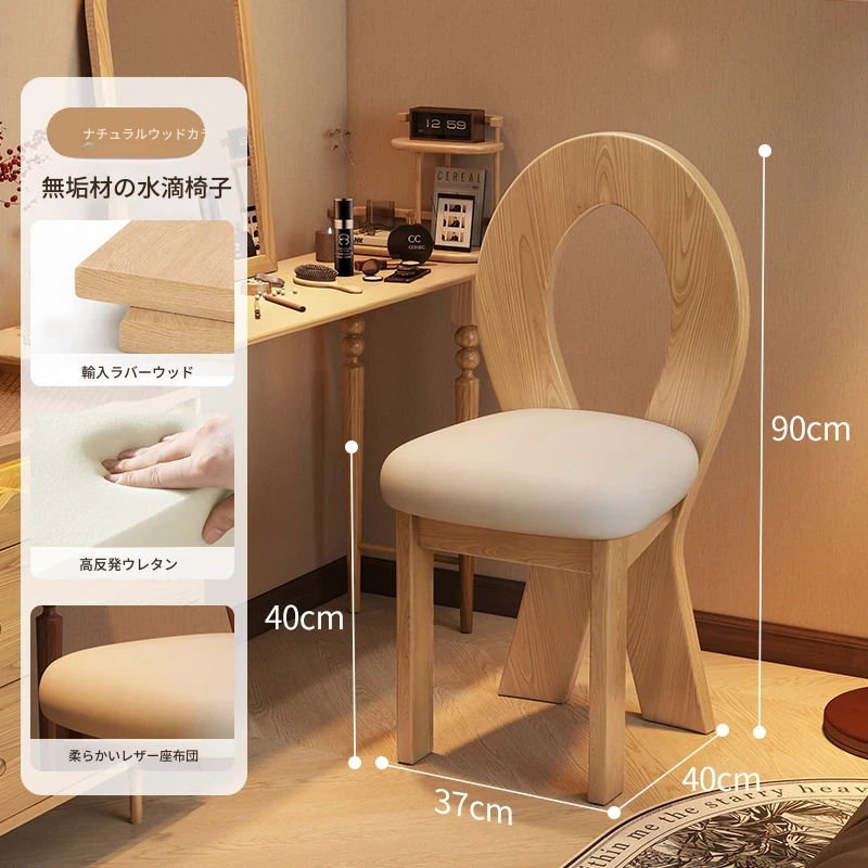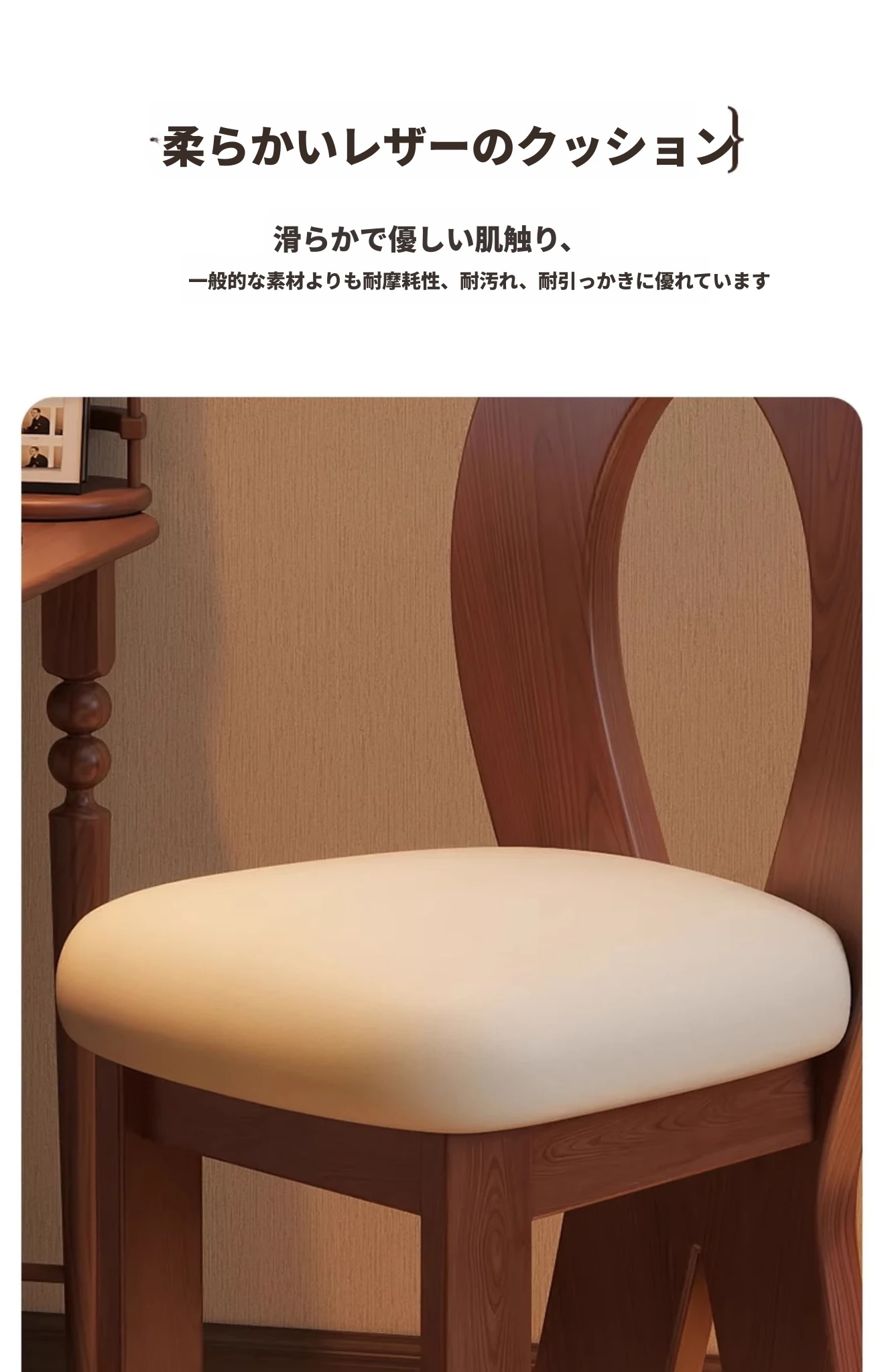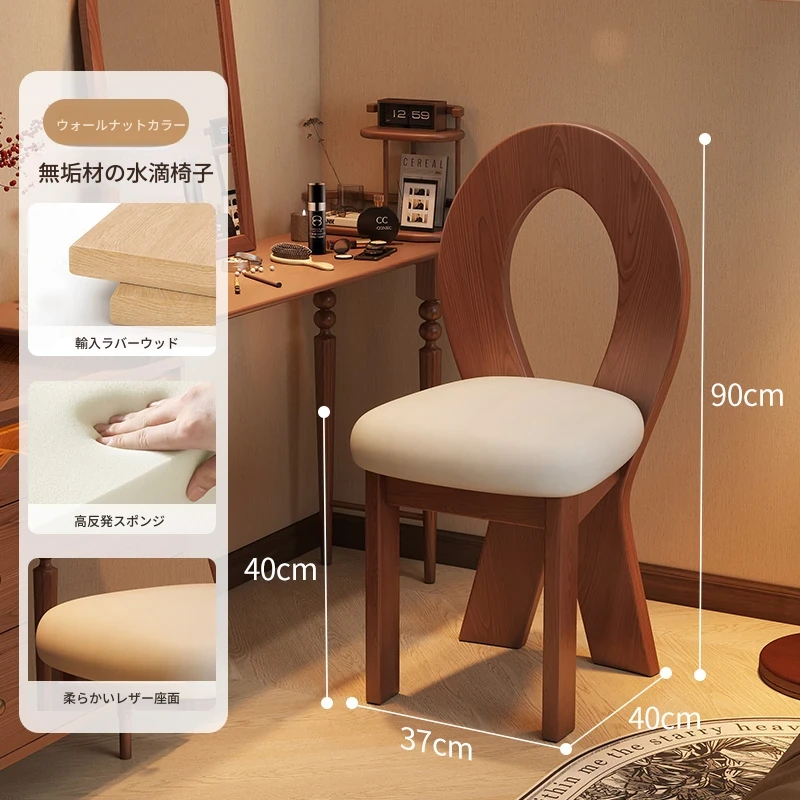レトロな無垢材のドレッシングチェア - 古典的な侘び寂びスタイルの背もたれ付き椅子。寝室にぴったりな軽やかなラグジュアリー感を演出するフレンチスタイルのメイクアップスツール。おしゃれで機能的なアイテムをぜひ!