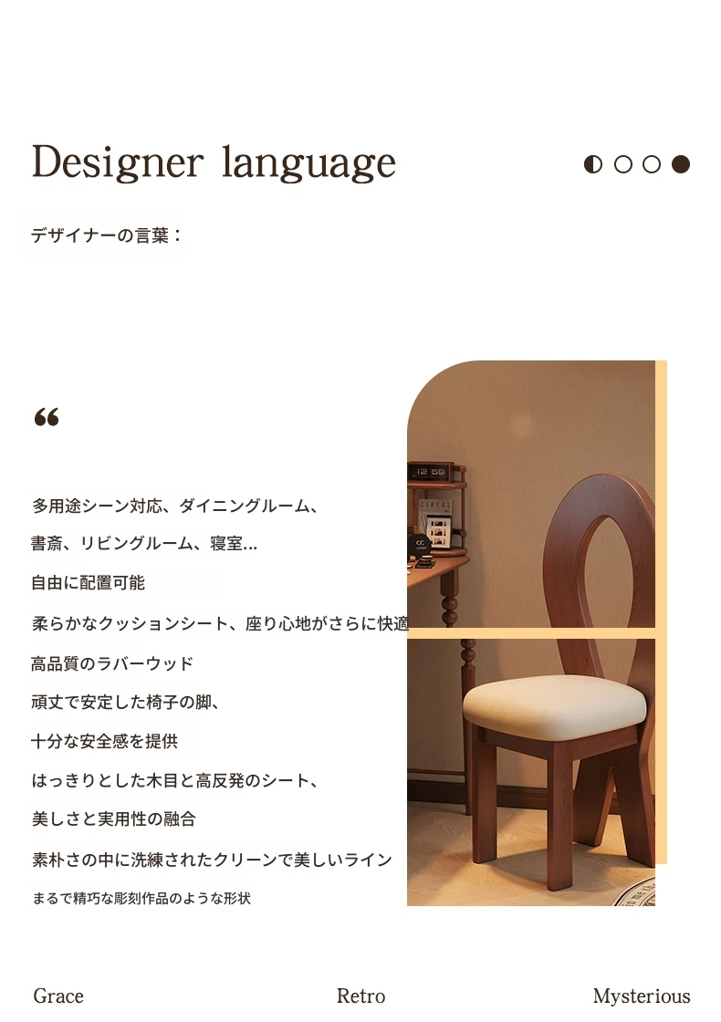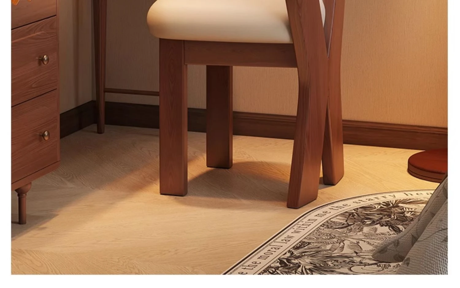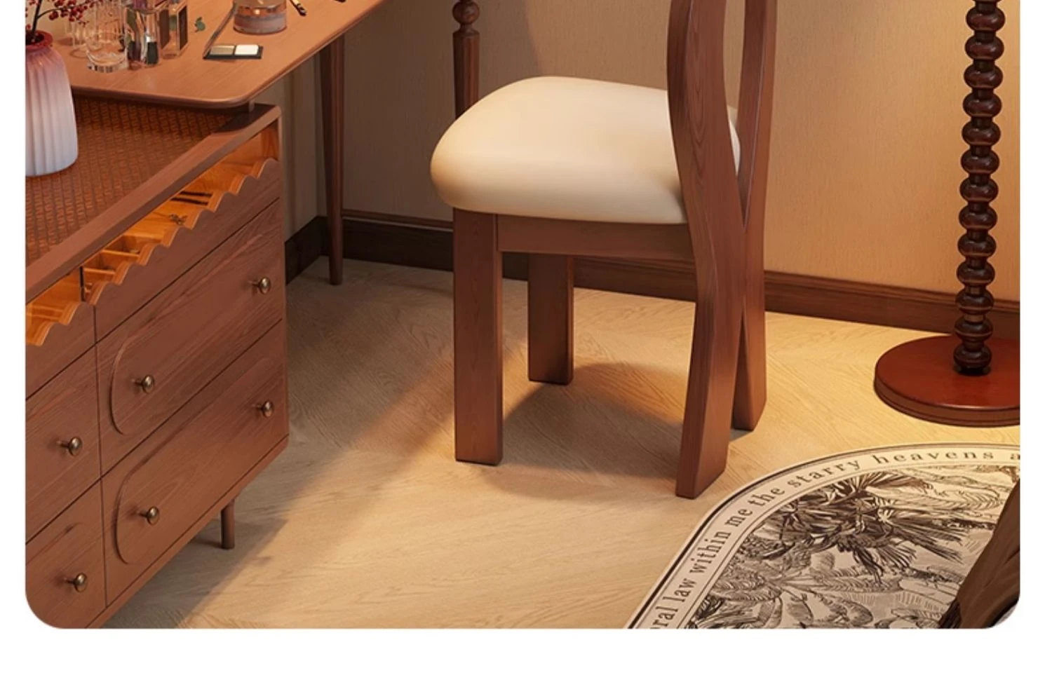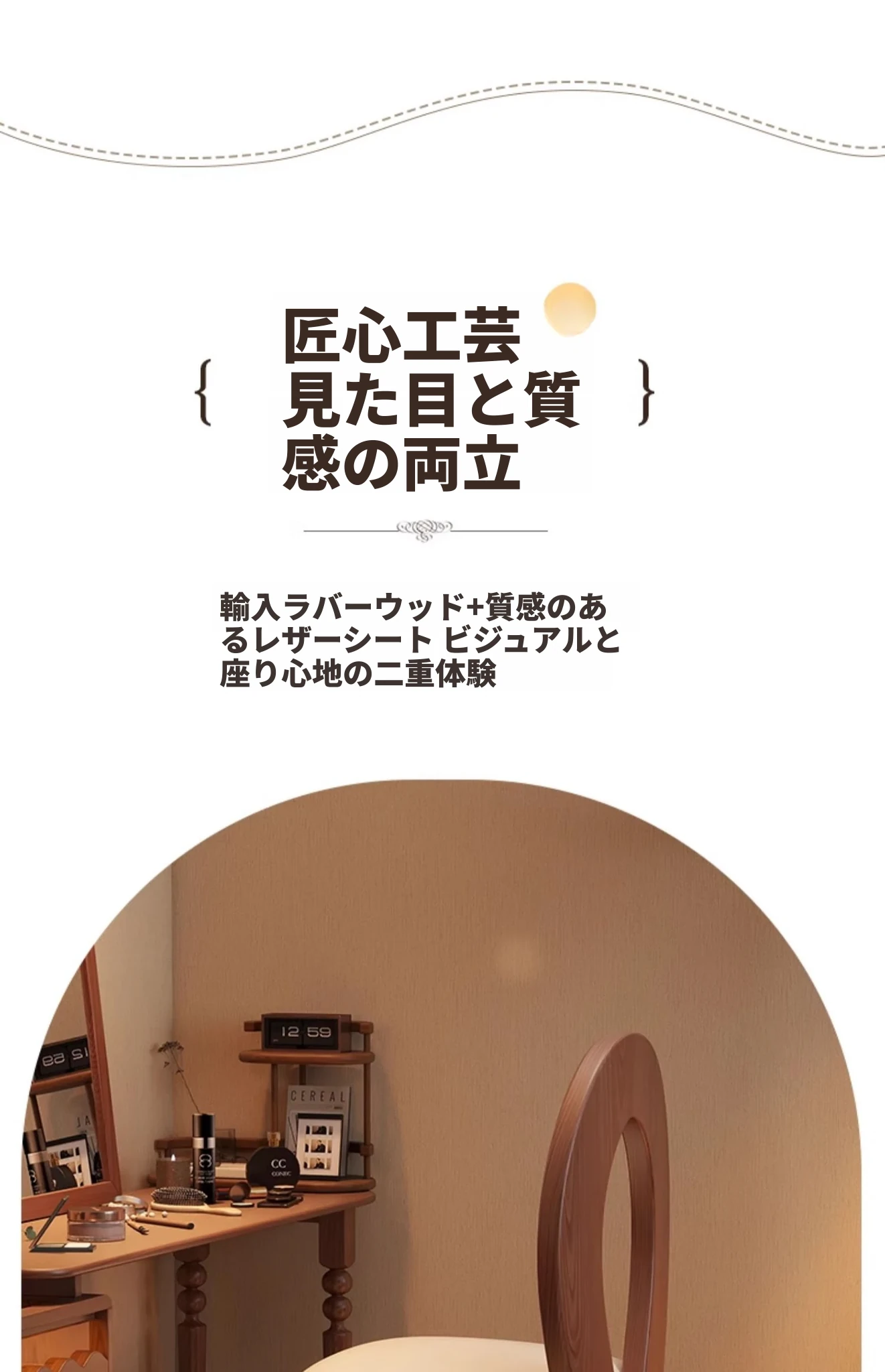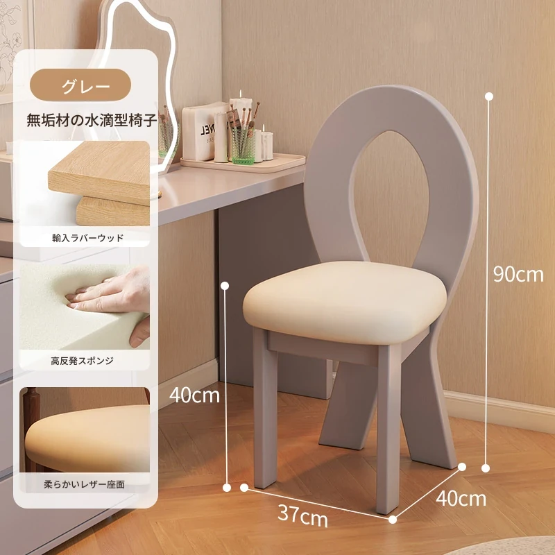 レトロな無垢材のドレッシングチェア - 古典的な侘び寂びスタイルの背もたれ付き椅子。寝室にぴったりな軽やかなラグジュアリー感を演出するフレンチスタイルのメイクアップスツール。おしゃれで機能的なアイテムをぜひ!