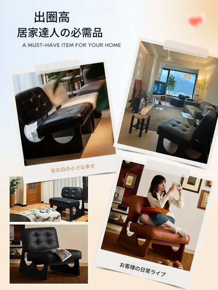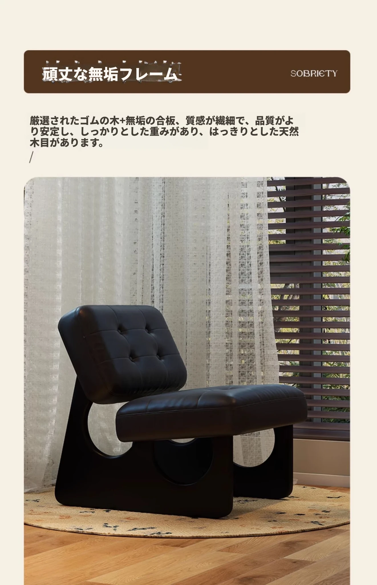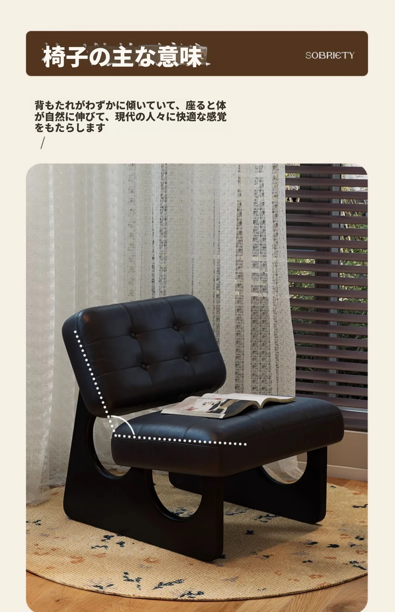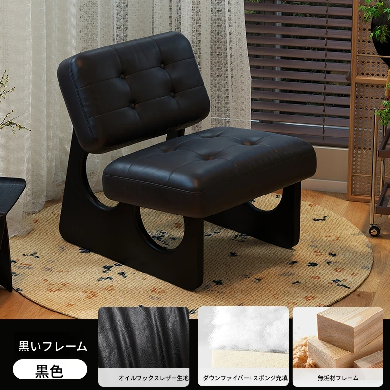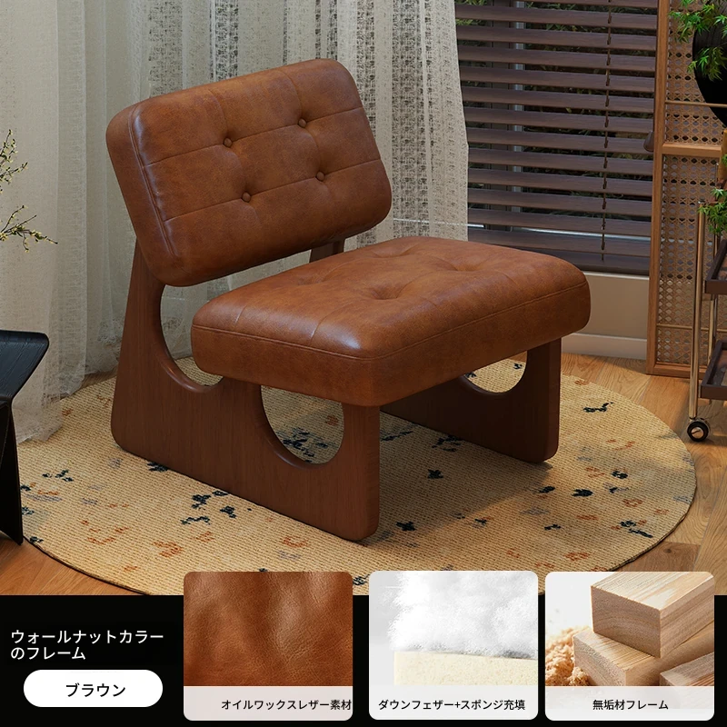 アンティーク風デザインの無垢材一人掛けソファチェア - レトロなオイルワックスレザー仕上げ、リラックスできる背もたれ付き、デザイナーのセンスが光る特別な一脚。おしゃれなインテリアに最適!