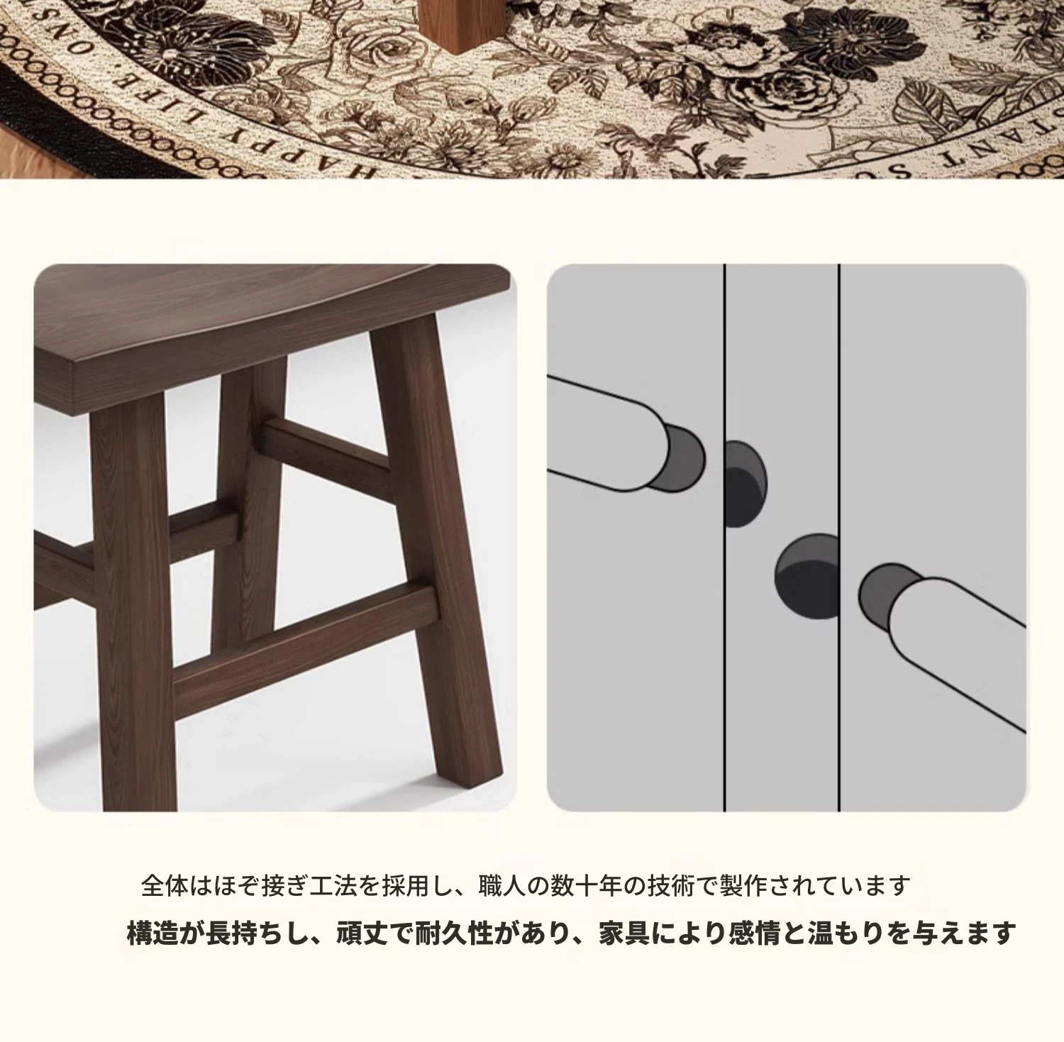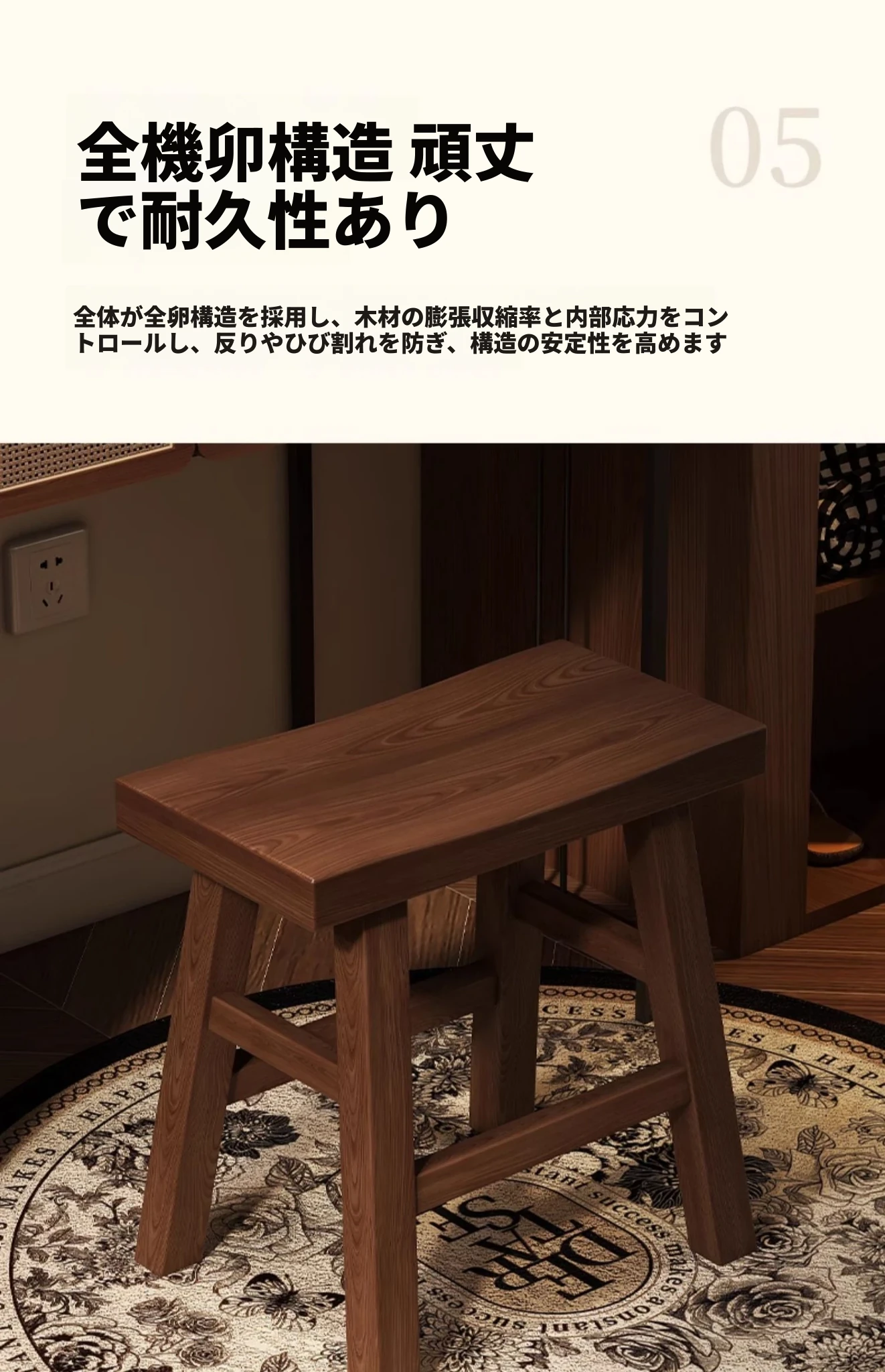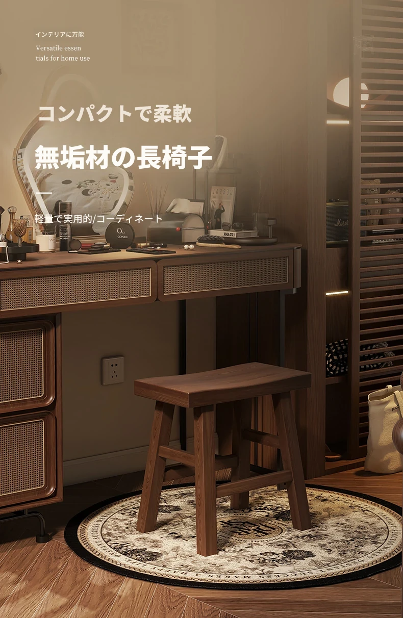 レトロな無垢材のドレッシングテーブル用スツール - 寝室にぴったりの軽やかなラグジュアリー感!化粧や休憩に最適なデザイン、衣服の着脱もスムーズに。おしゃれなカフェスタイルのダイニングスツールやシューズベンチとしても使えます!
