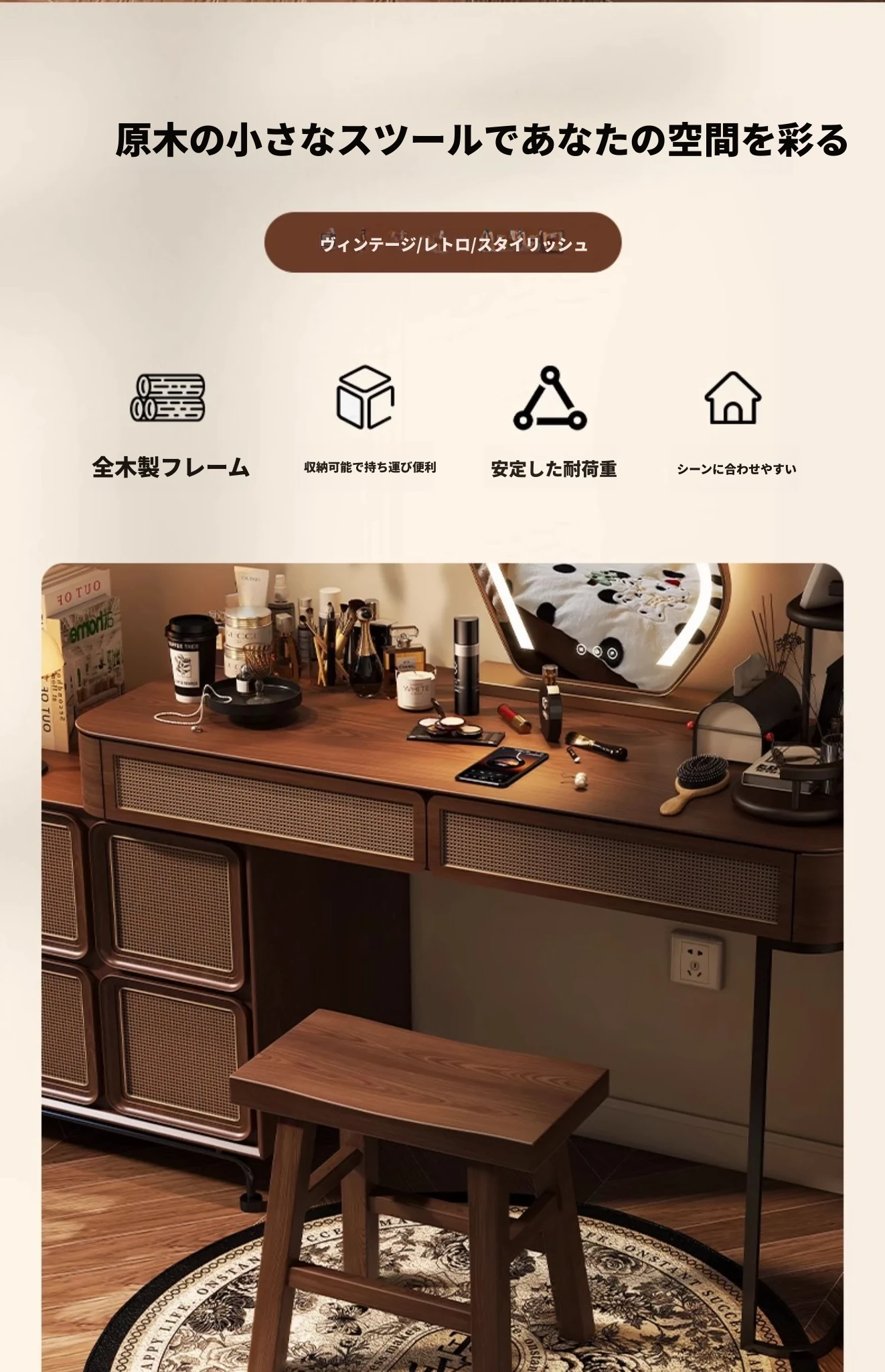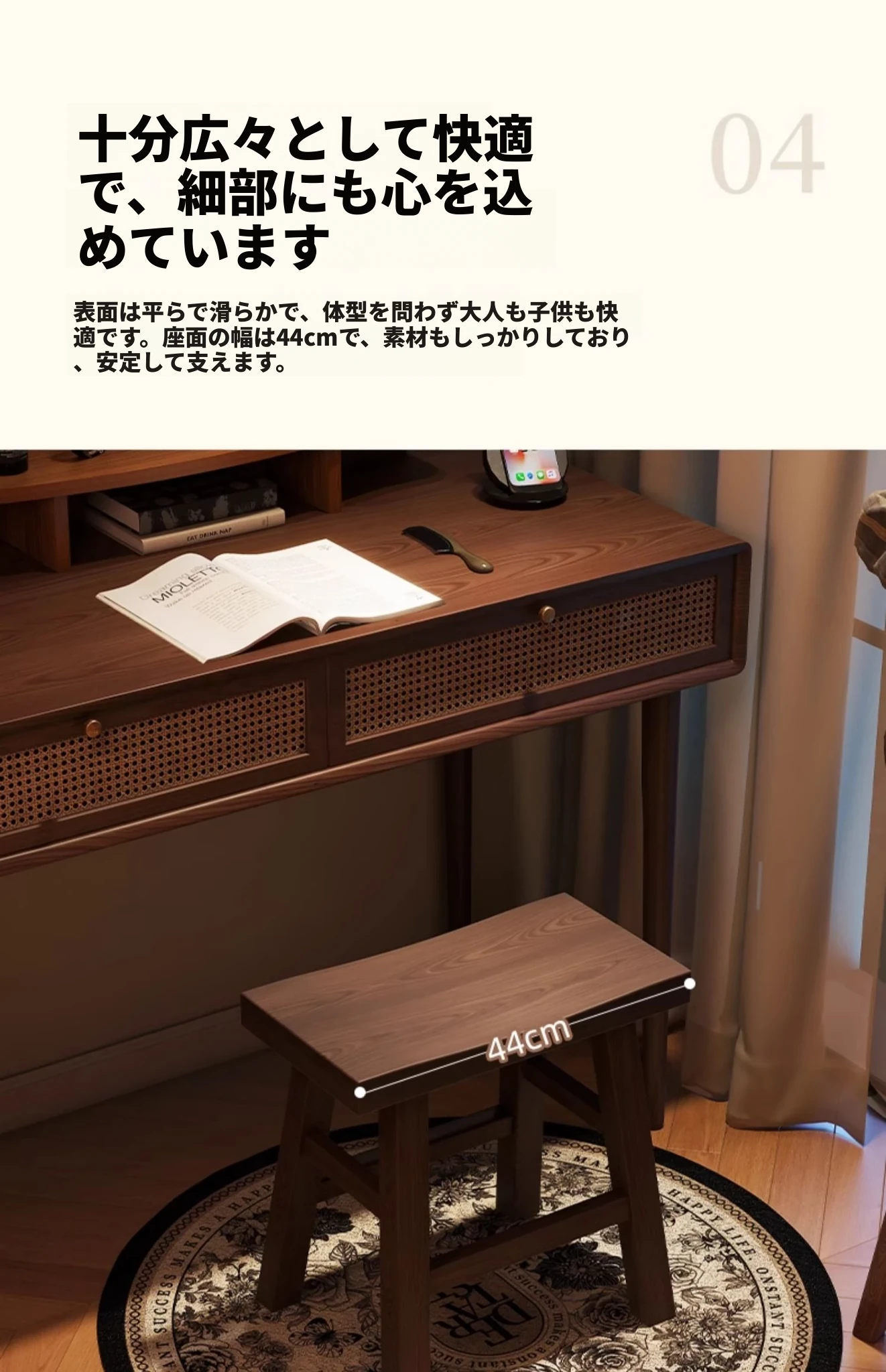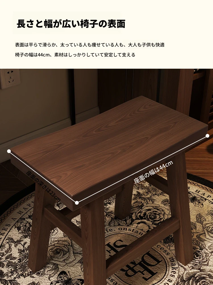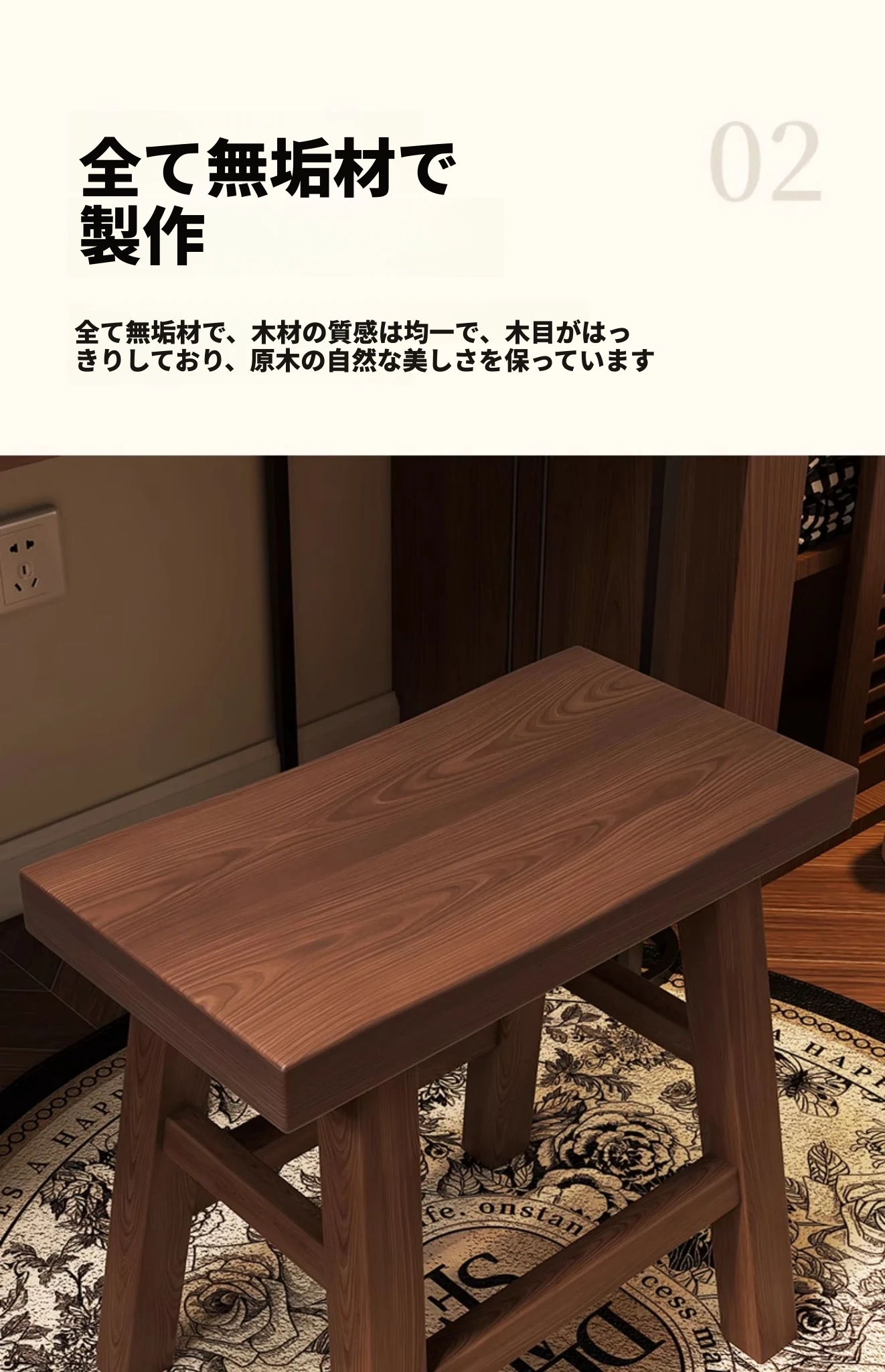 レトロな無垢材のドレッシングテーブル用スツール - 寝室にぴったりの軽やかなラグジュアリー感!化粧や休憩に最適なデザイン、衣服の着脱もスムーズに。おしゃれなカフェスタイルのダイニングスツールやシューズベンチとしても使えます!