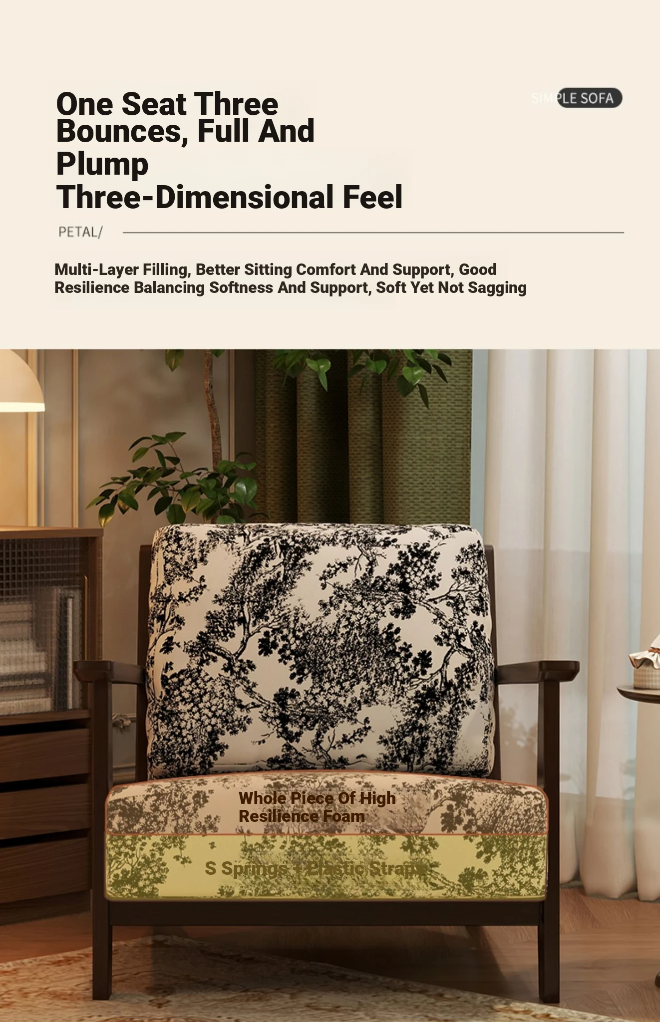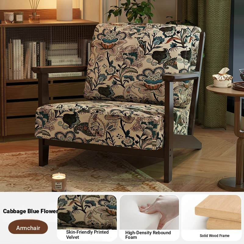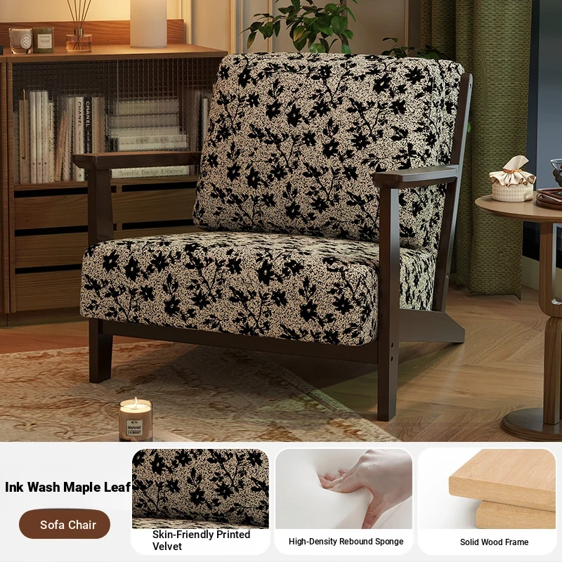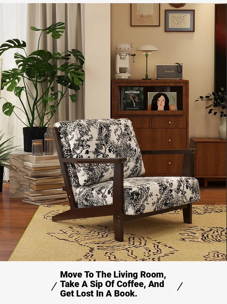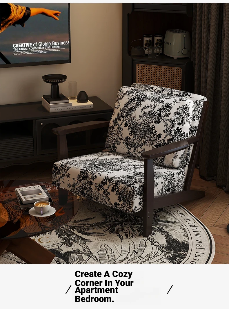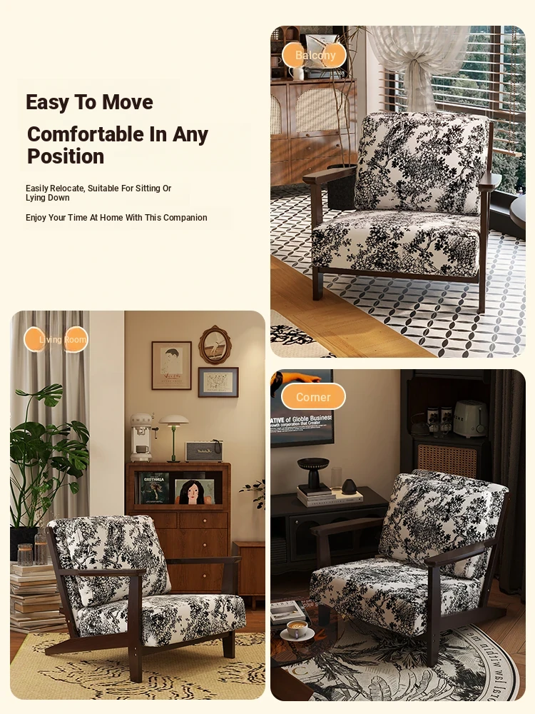 Vintage Style Solid Wood Armchair - Designer Retro Single Sofa for Living Room, Bedroom, and Balcony - Perfect for Relaxation at Home