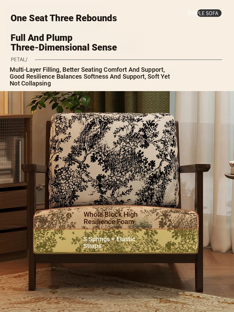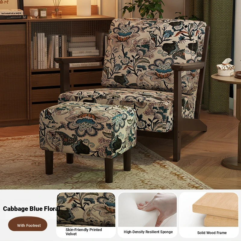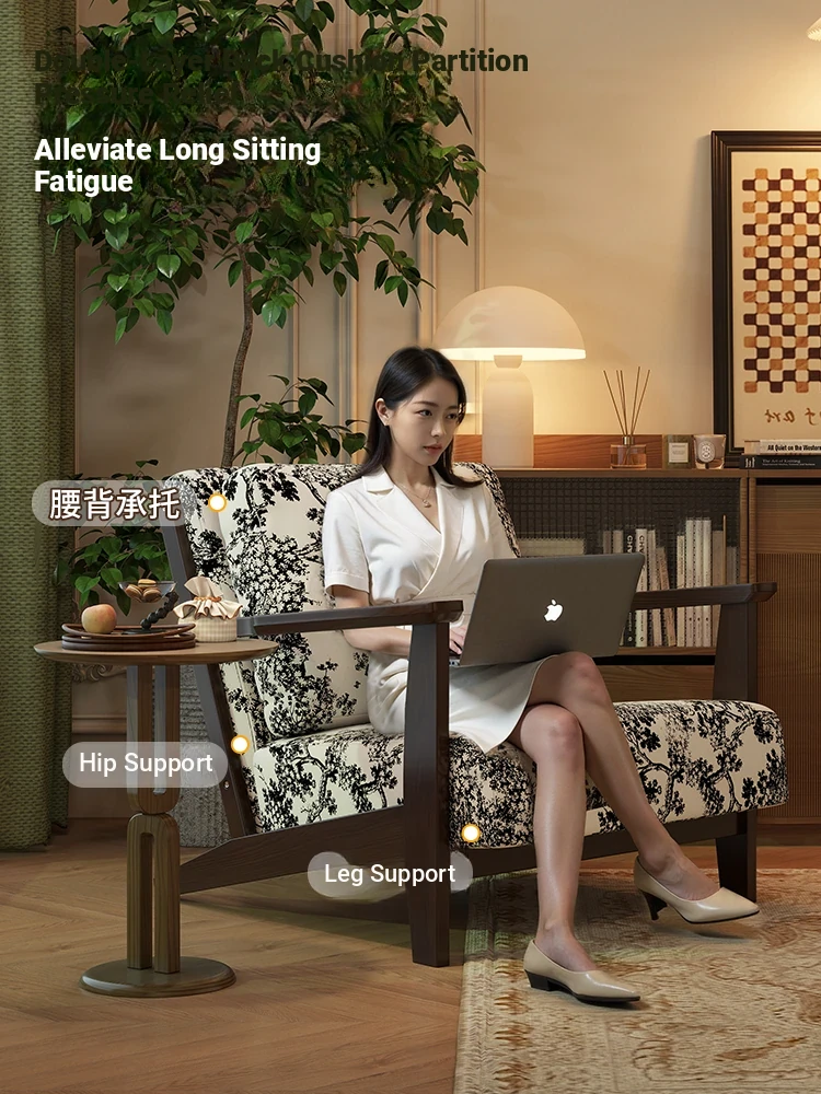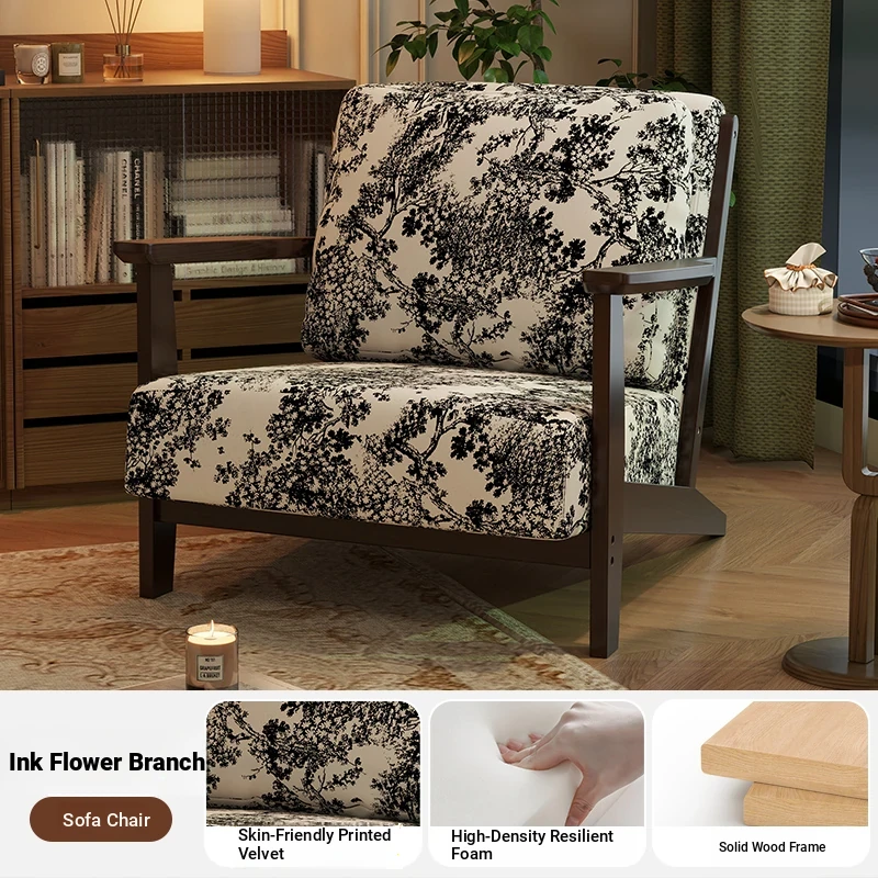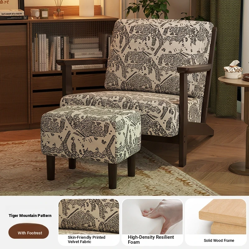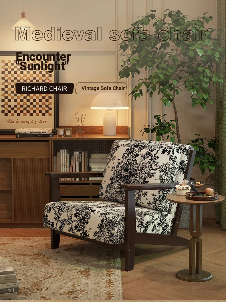 Vintage Style Solid Wood Armchair - Designer Retro Single Sofa for Living Room, Bedroom, and Balcony - Perfect for Relaxation at Home