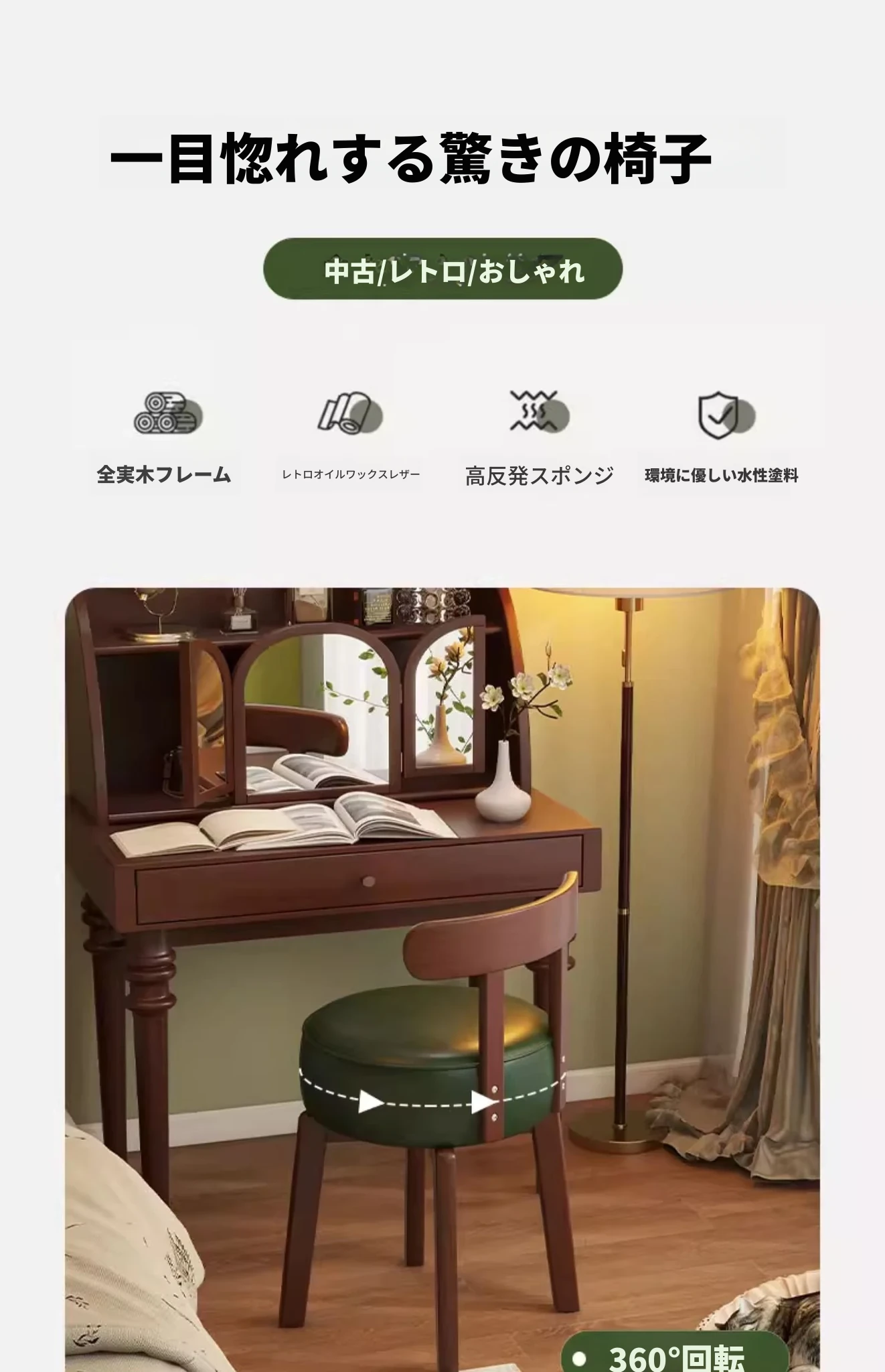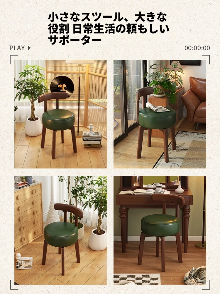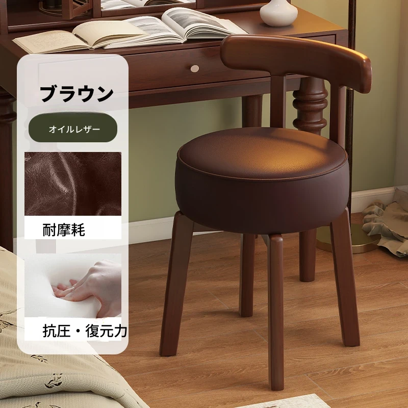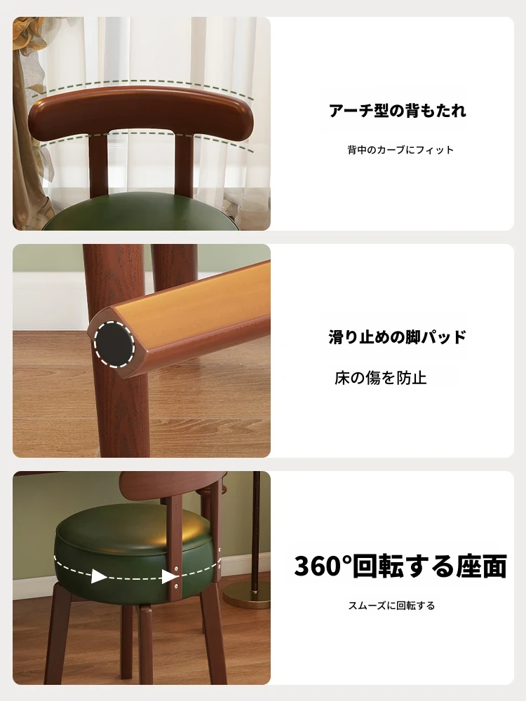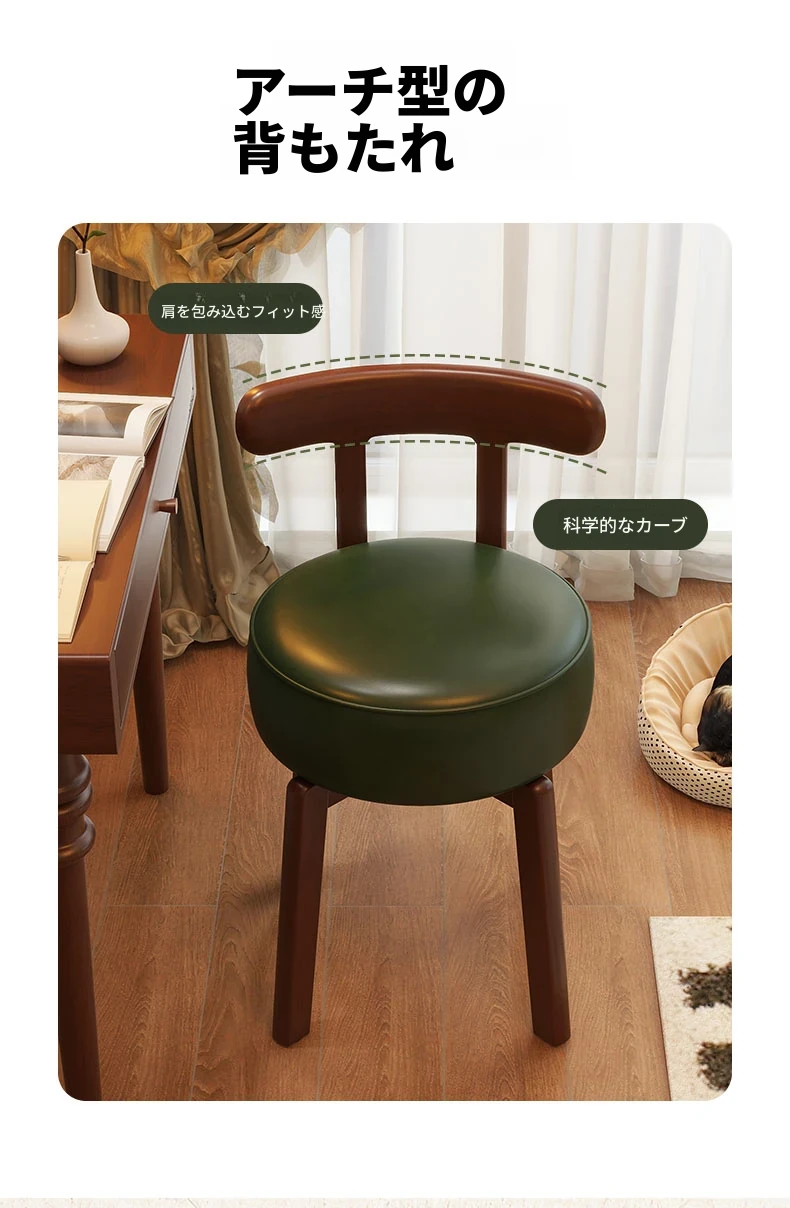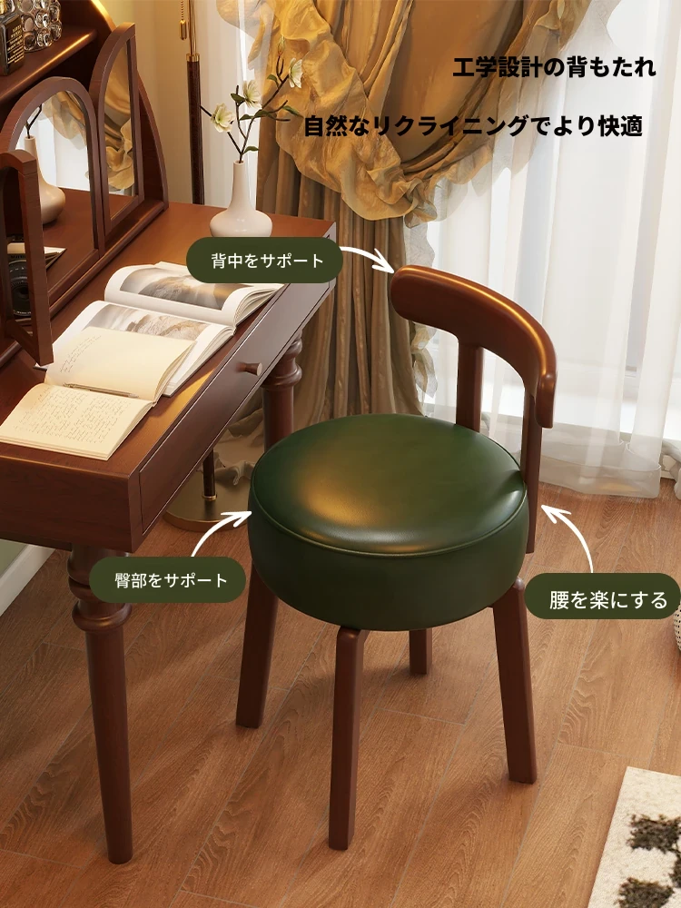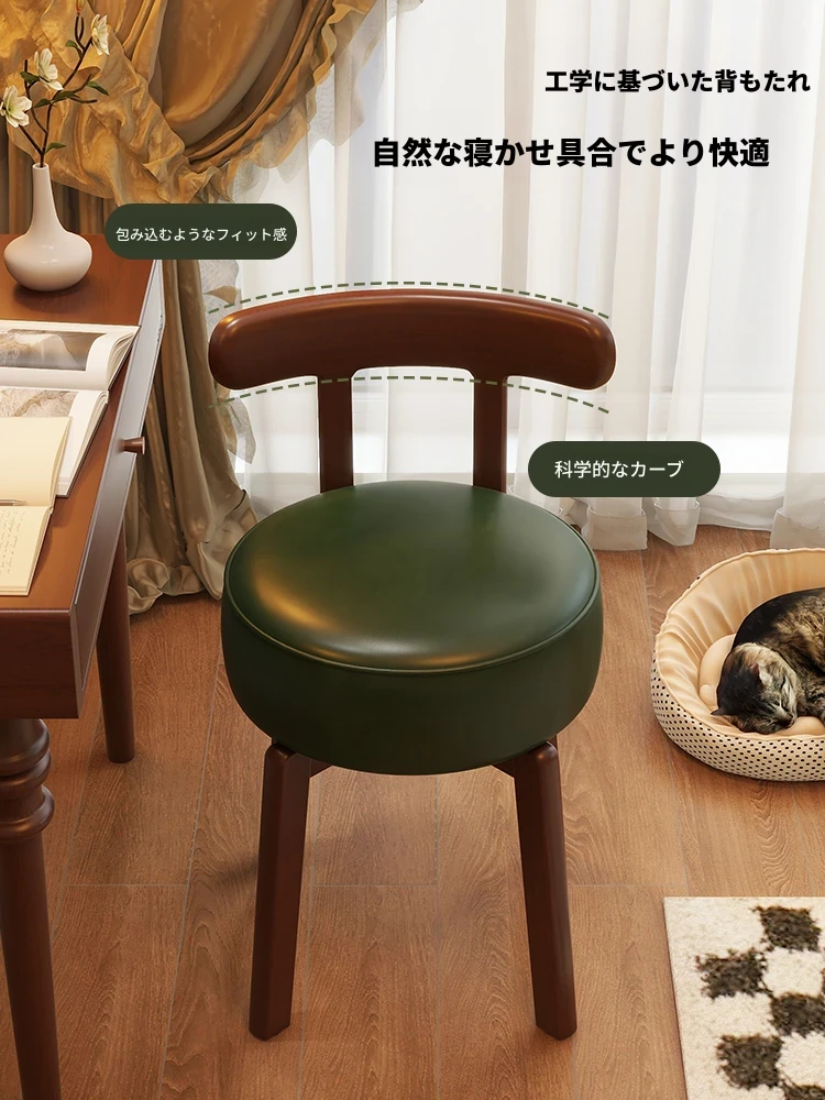 ヴィンテージ風回転式ドレッシングチェア|実木製|女の子のための寝室にぴったりな背もたれ付きドレッシングチェア|レトロで洗練されたデザイン|軽やかな贅沢感を演出!