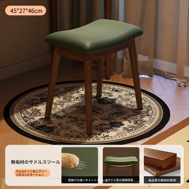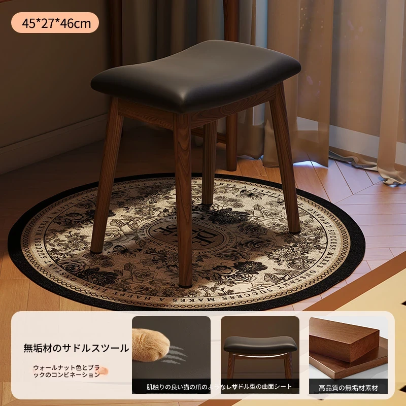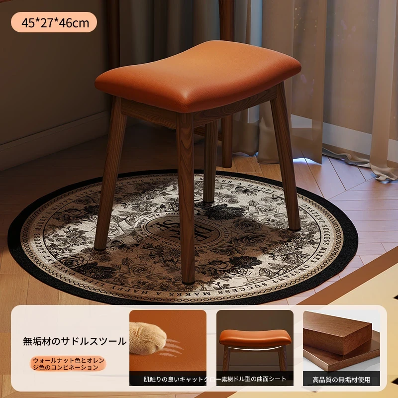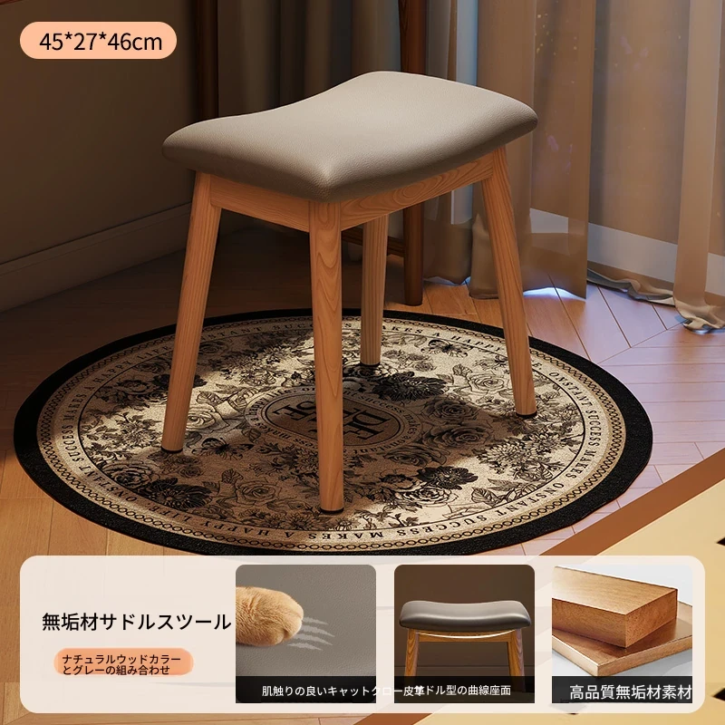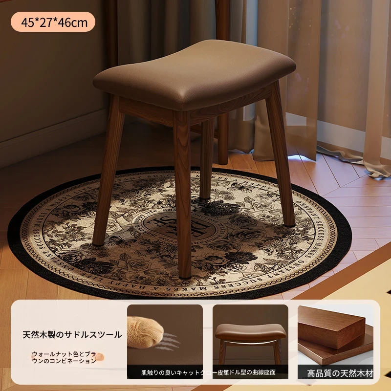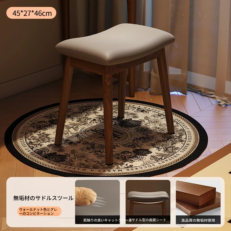 アンティーク風の木製マスキュリンなサドルスツール、女性のための高級感あふれるドレッサーチェア。寝室や化粧台にぴったりなコンパクトなデザインで、上質な空間を演出します。おしゃれで機能的な小さな椅子。