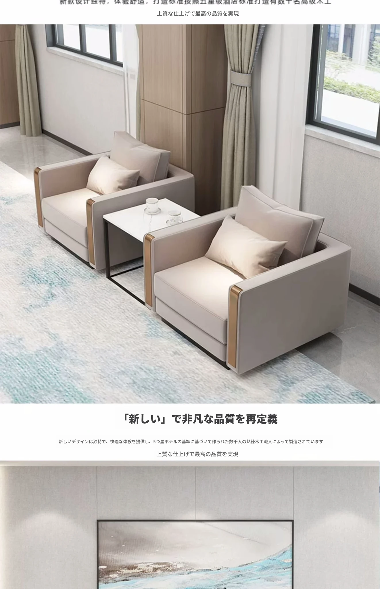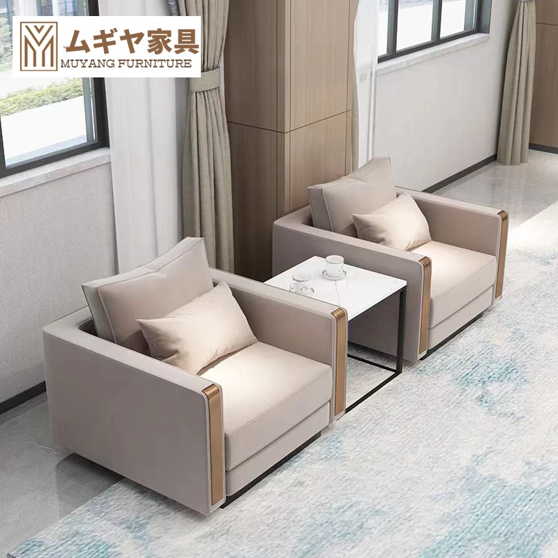 ビジネスに最適!高級ゲスト用会議ソファセット - オフィス休憩エリア、リーダーとの商談にぴったりな一人用ソファとテーブルの組み合わせ。快適さとスタイルを兼ね備えたアイテムで、上質な時間を演出します。