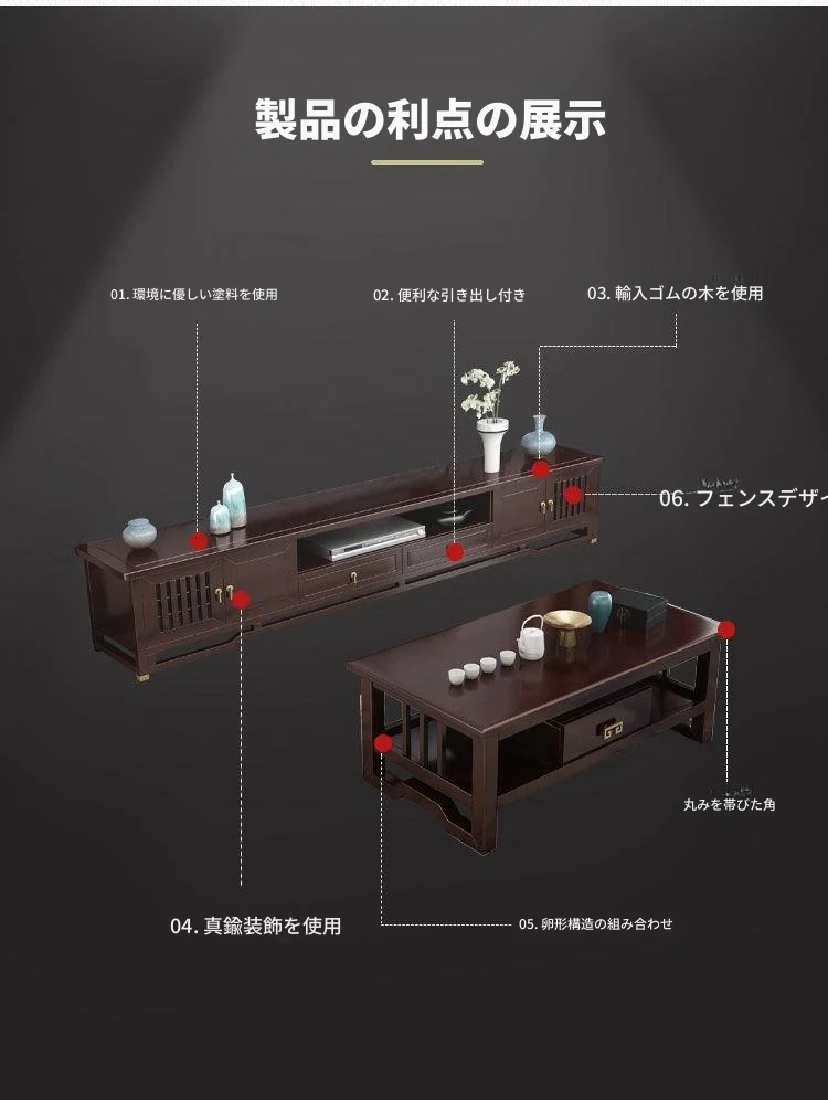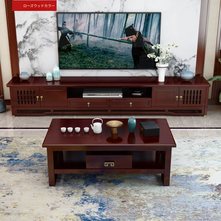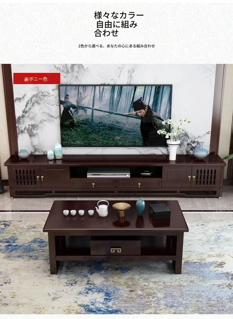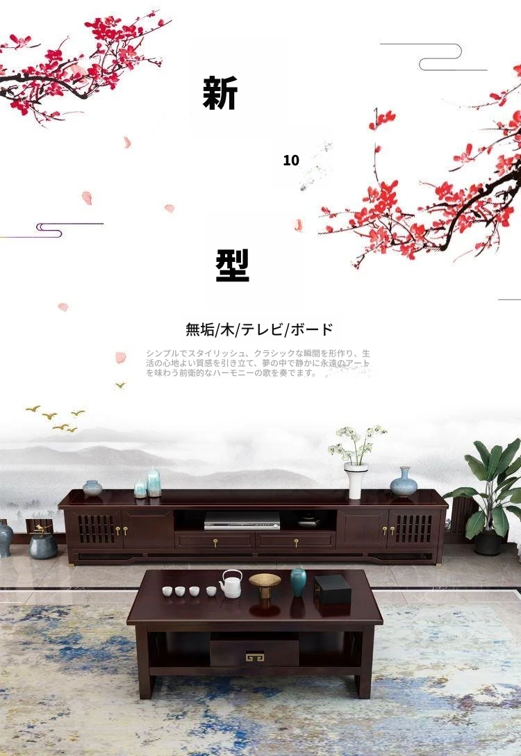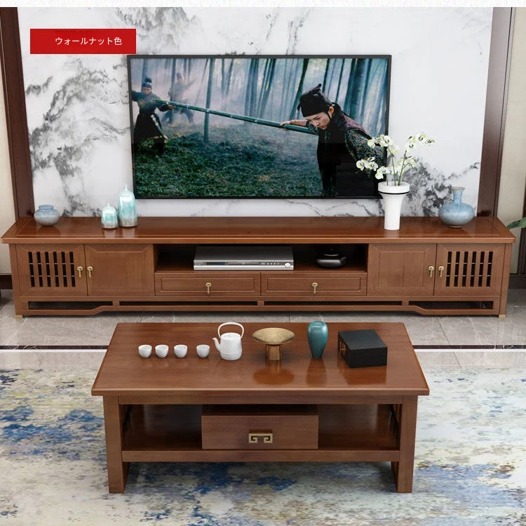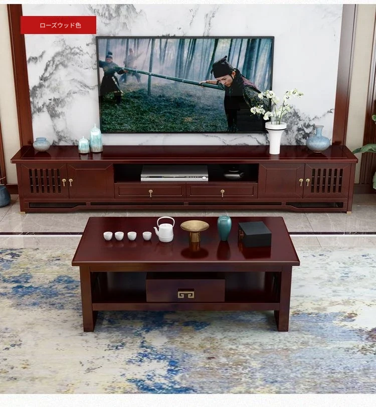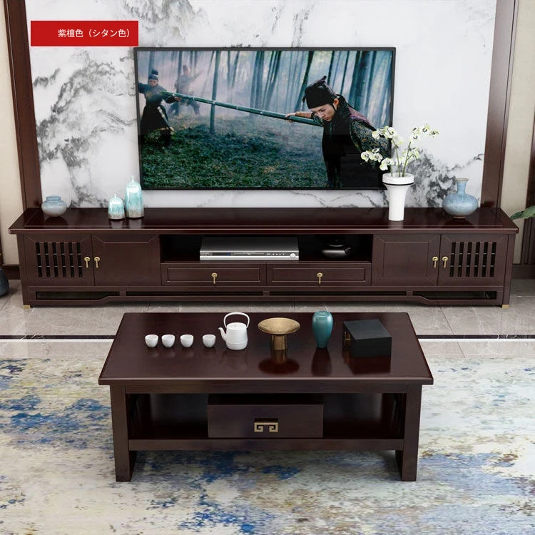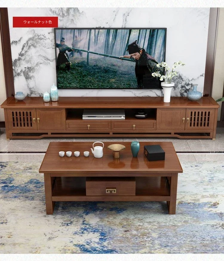 新中式スタイルの無垢材テレビキャビネット&コーヒーテーブルセット - 禅の雰囲気漂う軽やかなラグジュアリー、レトロなデザインが魅力のリビングルームに最適な収納キャビネットです!