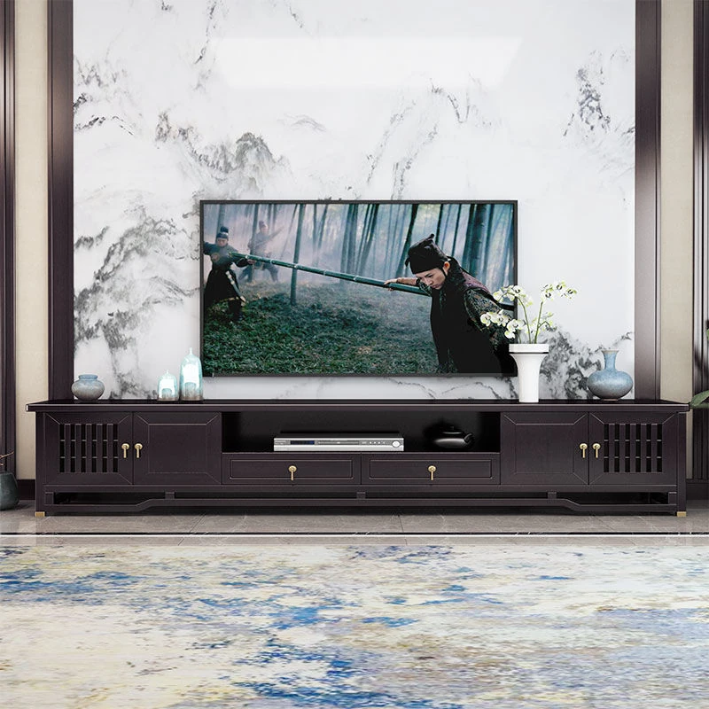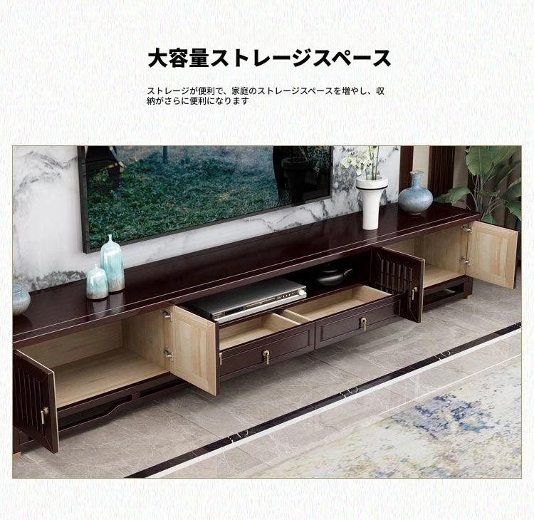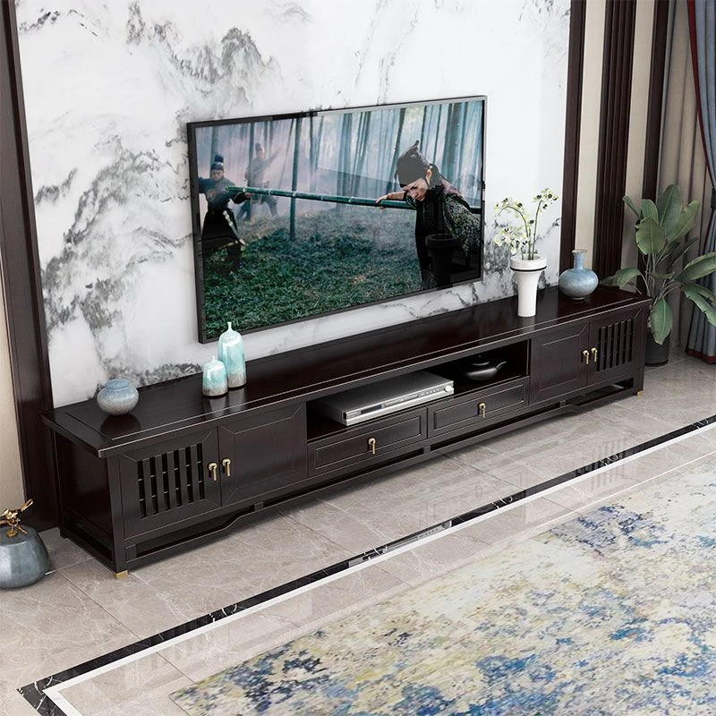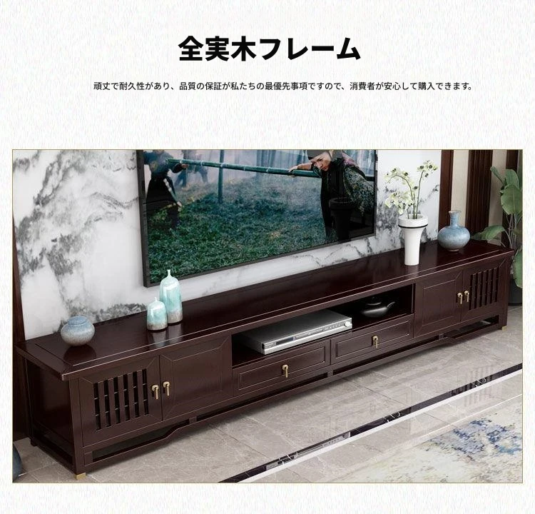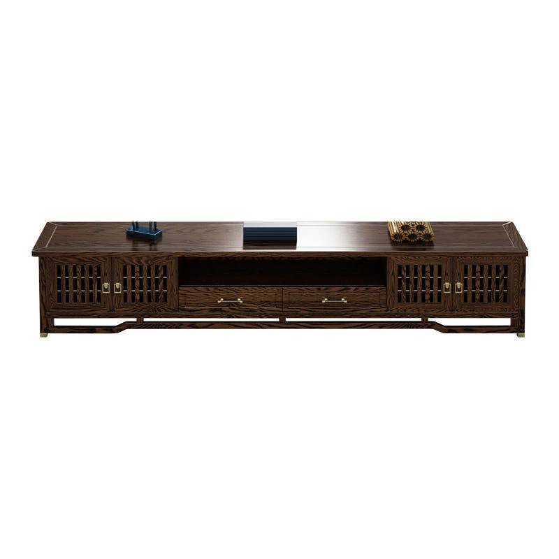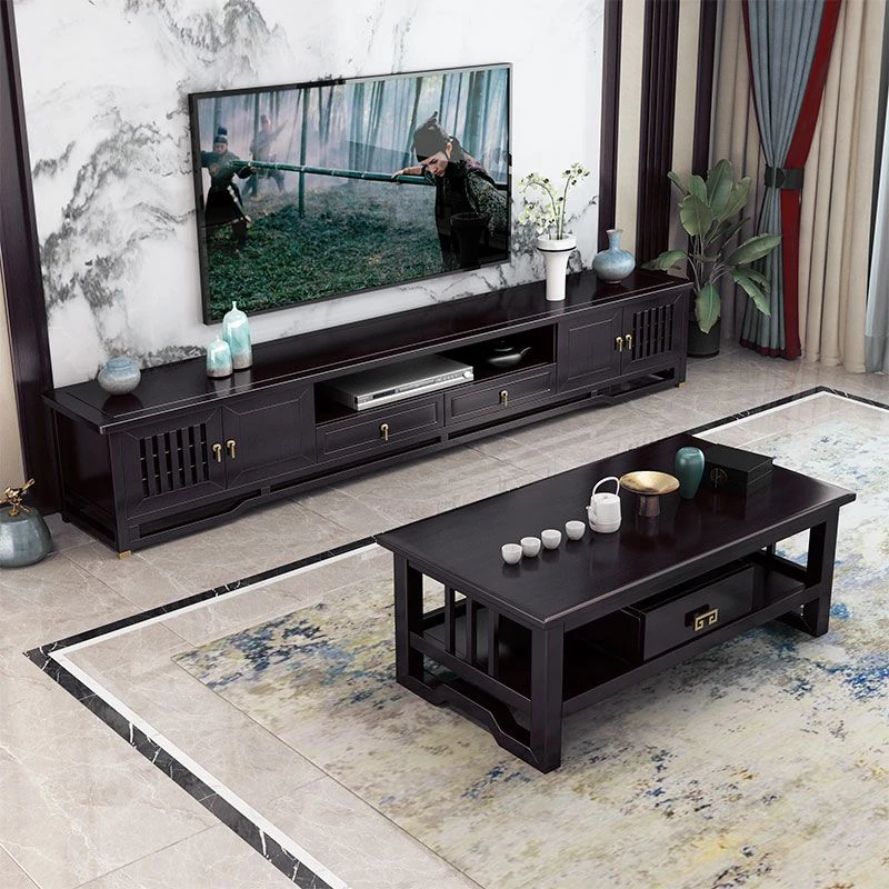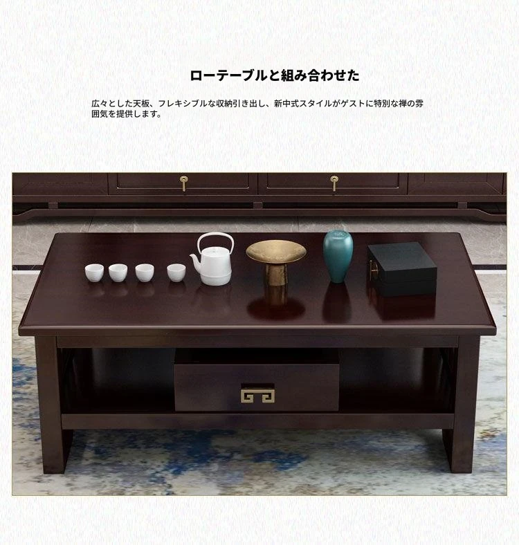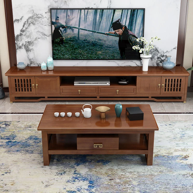 新中式スタイルの無垢材テレビキャビネット&コーヒーテーブルセット - 禅の雰囲気漂う軽やかなラグジュアリー、レトロなデザインが魅力のリビングルームに最適な収納キャビネットです!