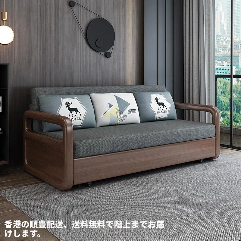 【香港送料無料】折りたたみ可能な本木製ソファベッド!多機能で小スペースに最適!人気のデザイン、ダブルサイズで収納も充実。北欧風のリビングを演出するアイテムです!