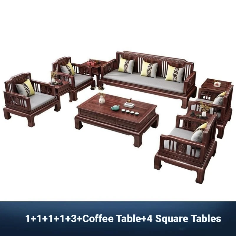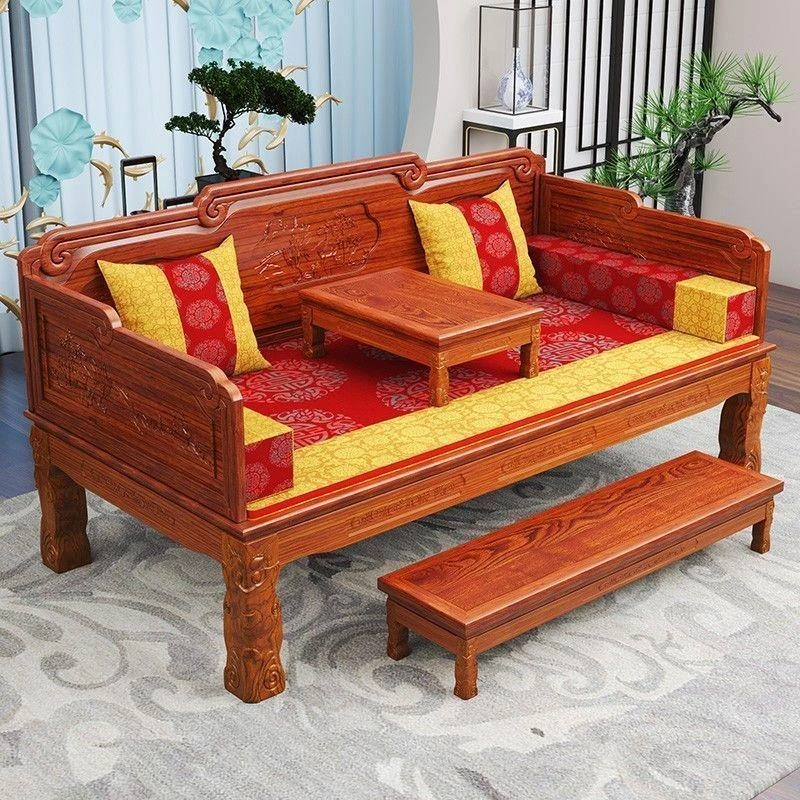 Pineapple Wood Solid Wood Sofa - Elegant New Chinese Style Huanghuali Sofa for All Seasons, Vintage Design, Perfect for Your Living Room, Premium Mahogany Furniture