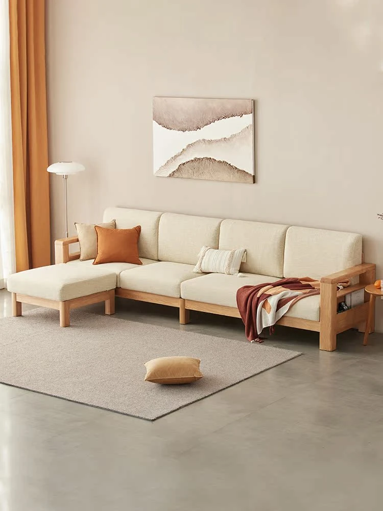 Nordic Solid Wood Sofa - Modern Minimalist Oak Corner Sofa for Small Spaces, Japanese Style Fabric Couch for Your Living Room
