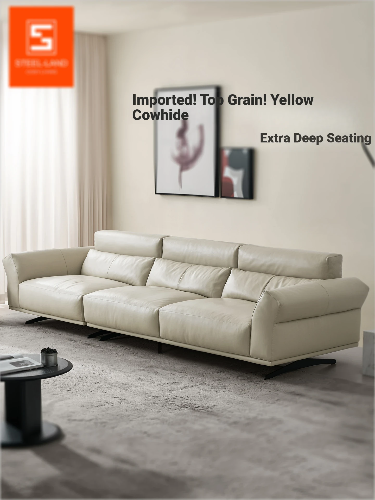 Steyrland Genuine Leather Sofa - Italian Minimalist Design, Top Grain Cowhide, Luxury American Style for Living Room, Elegant and High-End Leather Sofa for Your Horizontal Lounge