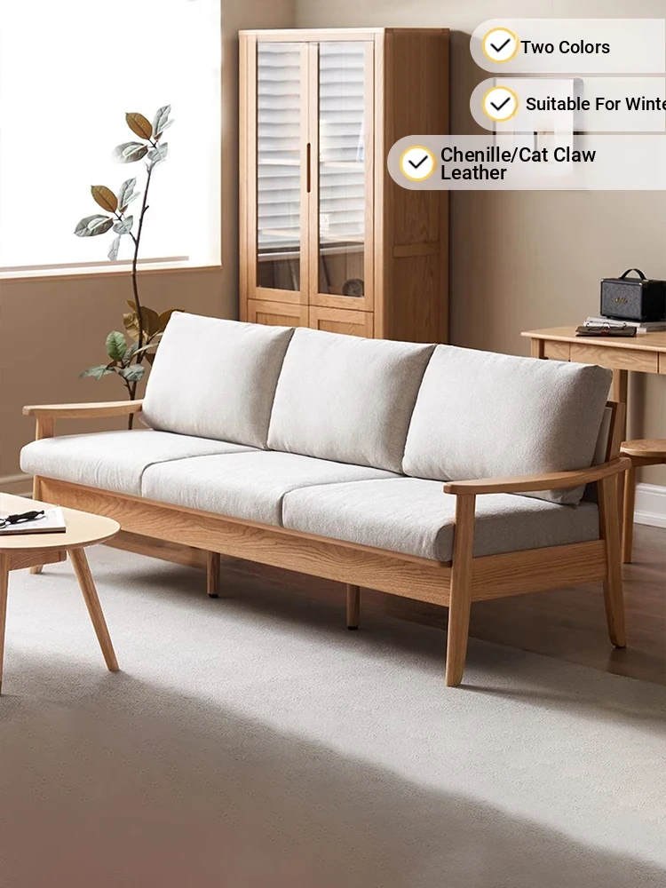 Nordic Solid Wood Sofa - Modern Minimalist Oak Fabric Sofa for Small Spaces, Japanese Style Natural Wood Sofa Set for Cozy Living Rooms