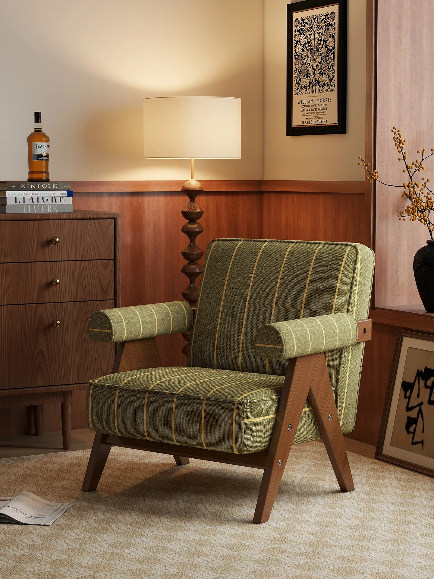 Vintage Armchair Sofa - Retro Style Solid Wood Single Chair for Living Room, Designer Lounge Chair, Perfect for Study and Cozy Spaces